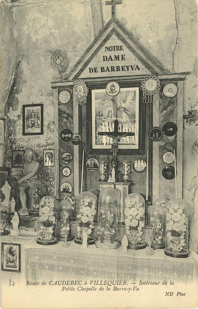Un ex-voto, adressé le 3 août 1783 à Notre-Dame de Barre-Y-Va par Jean Galay, maître de quai à Caudebec, était autrefois présenté dans la chapelle. Cette huile sur toile, représentant une scène de naufrage qui a réellement eu lieu, a probablement été peinte par Louis-François Lesage. Grâce à l'intervention divine de la Vierge (représentée en haut, à droite), le patron a été sauvé ainsi que le marin secouru par un passeur. Elle fait désormais partie des collections de MuséoSeine.