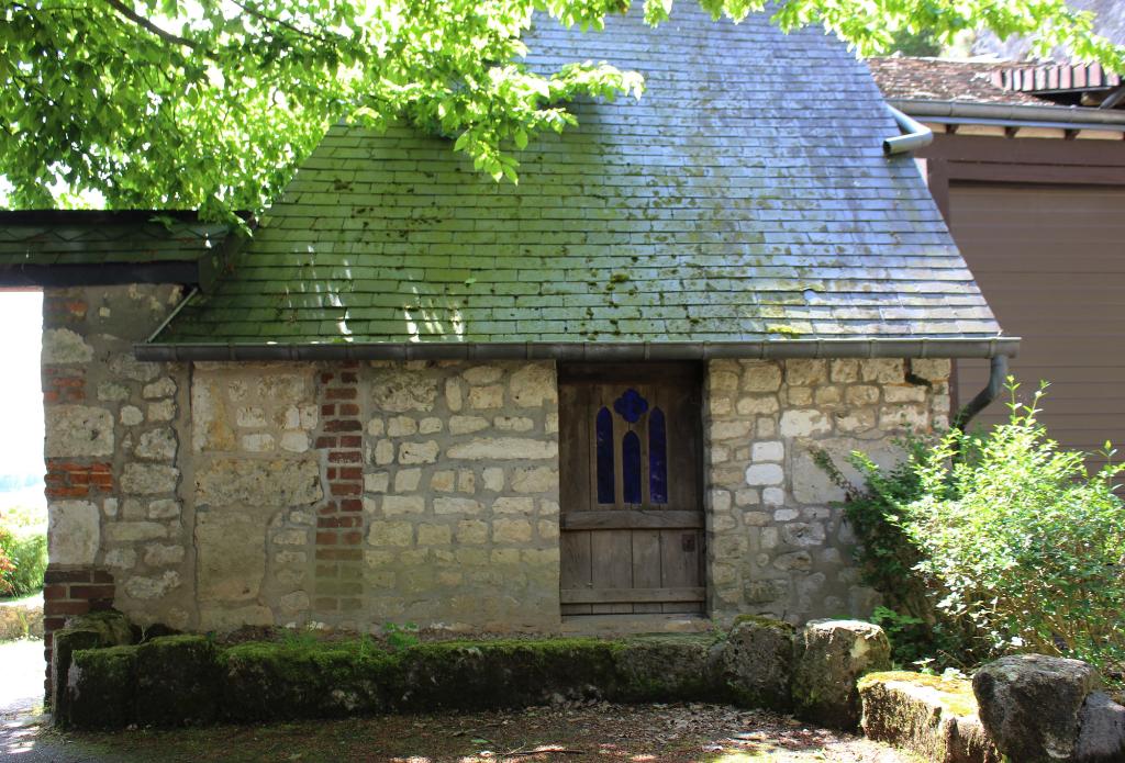 Ce petit édifice est construit en moellons calcaire. Il compote une ouverture à l'Est fermée par une porte en bois ajourée, tandis que son côté Sud est fermé par une grille en fer forgé peinte en bleue. Son toit en croupe est couvert d'ardoise.