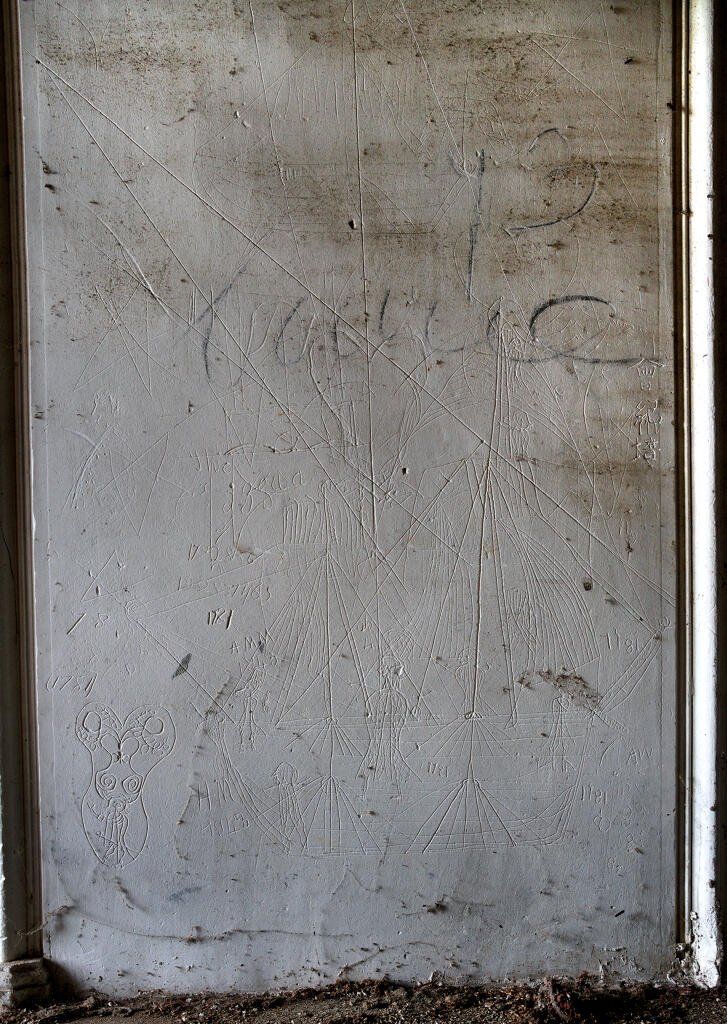 Plusieurs graffiti portant la date 1781 sont observables sur le manteau de la cheminée sous comble.