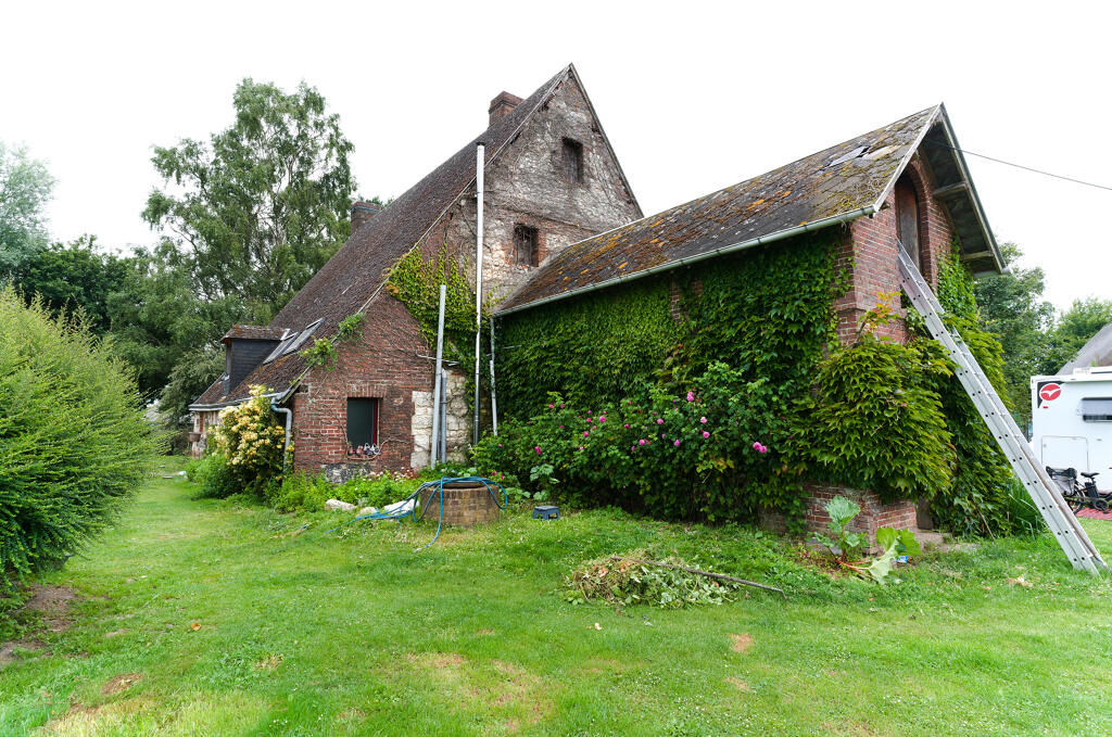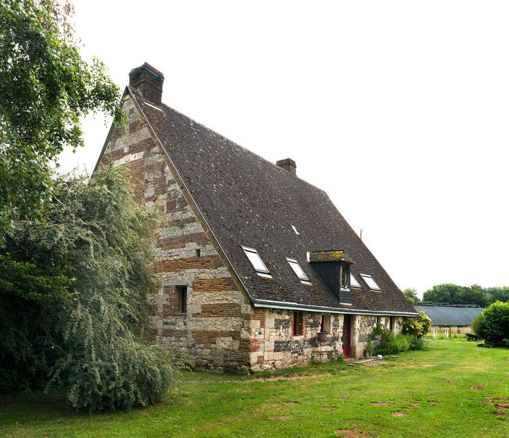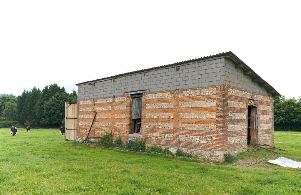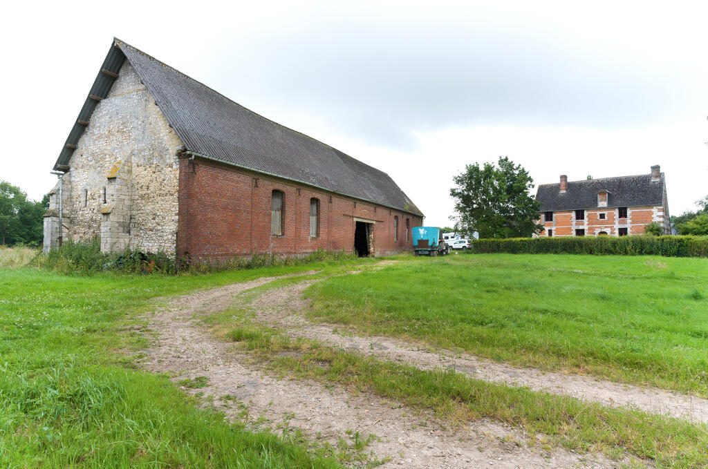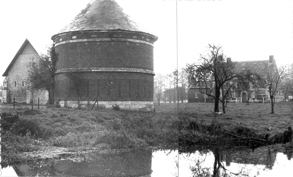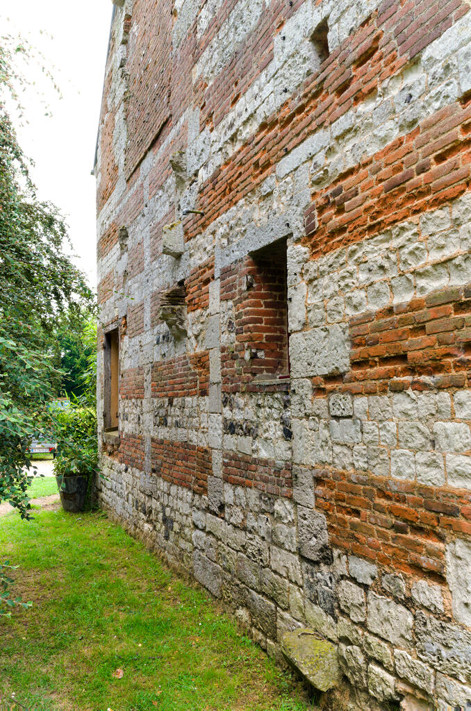 - une étable à veaux en assises alternées de brique et de silex. La construction, en partie arasée, est actuellement couverte d'un appentis en tôle ondulée.