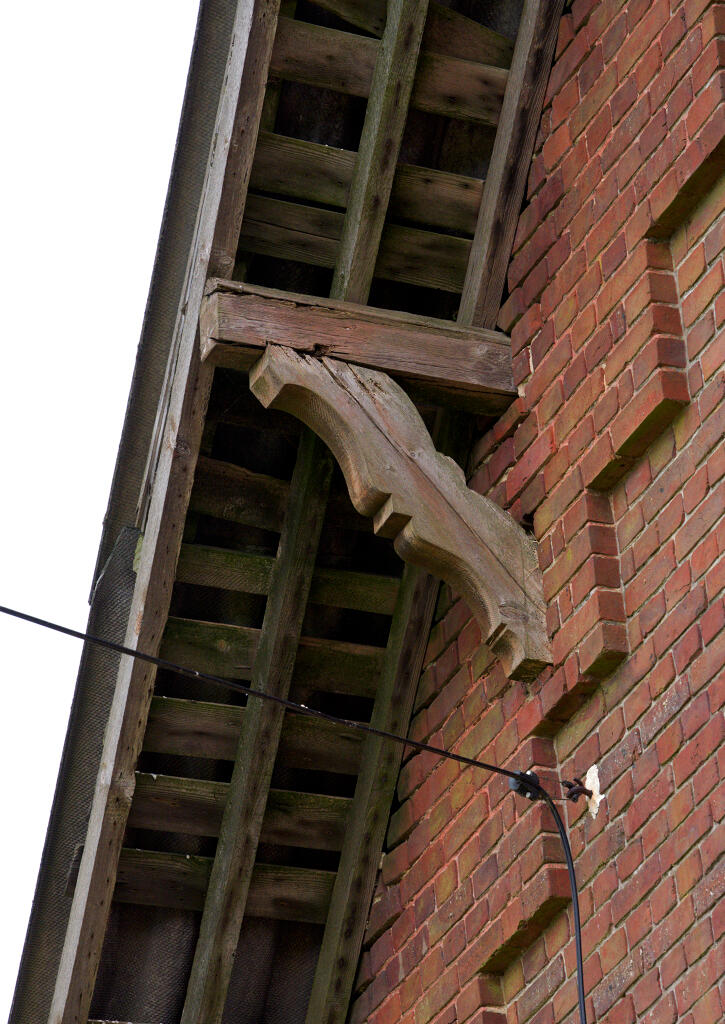 - des vestiges d'une ancienne écurie en maçonnerie de brique, silex noir et pierre de taille calcaire avec charretterie en charpente attenante.