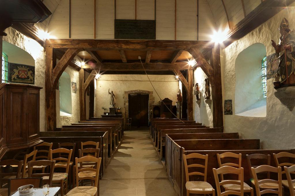 Le décapage de l'arc diaphragme entre la nef et le chœur a fait apparaître des éléments anciens (visite C.D.A. 1991). Dans le piédroit situé au nord est creusée une niche disposant d'un trou au centre de sa partie inférieure. Il pourrait s'agir de la piscine aux ablutions de l'ancienne église, soit utilisée en remploi, soit se trouvant surbaissée en raison de l'exhaussement du sol actuel.