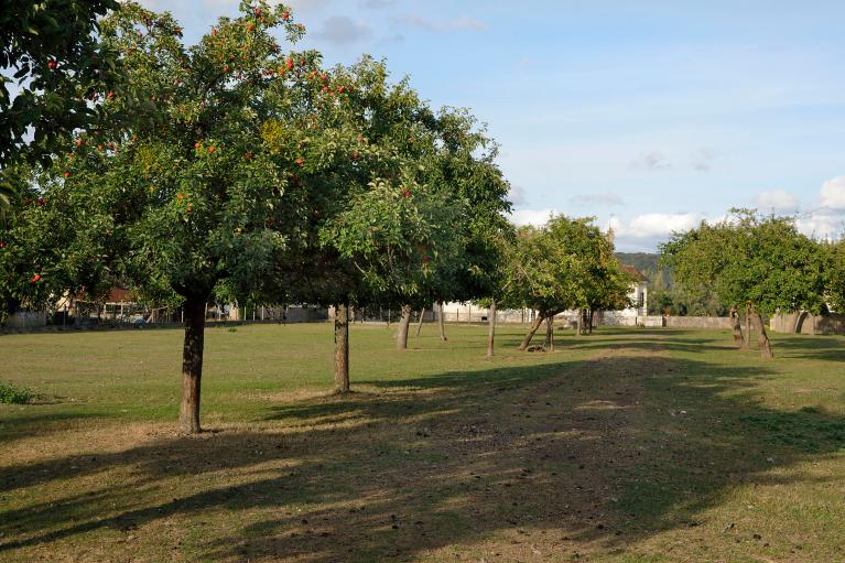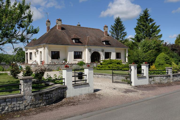 La propriété comprend un jardin paysager à l'avant de la parcelle et une cour plantée d'un verger de pommiers à l'arrière. Une autre dépendance agricole (étable, grange et charretterie) située à l'autre extrémité de la parcelle, donnant sur la rue Pasteur, faisait autrefois partie de cette propriété : elle est bâtie en pan de bois sur un soubassement en brique de Saint-Jean et pierre calcaire et couverte en tôle ondulée.