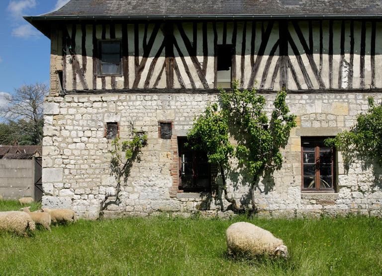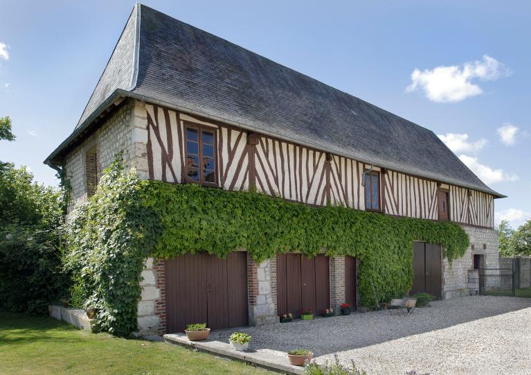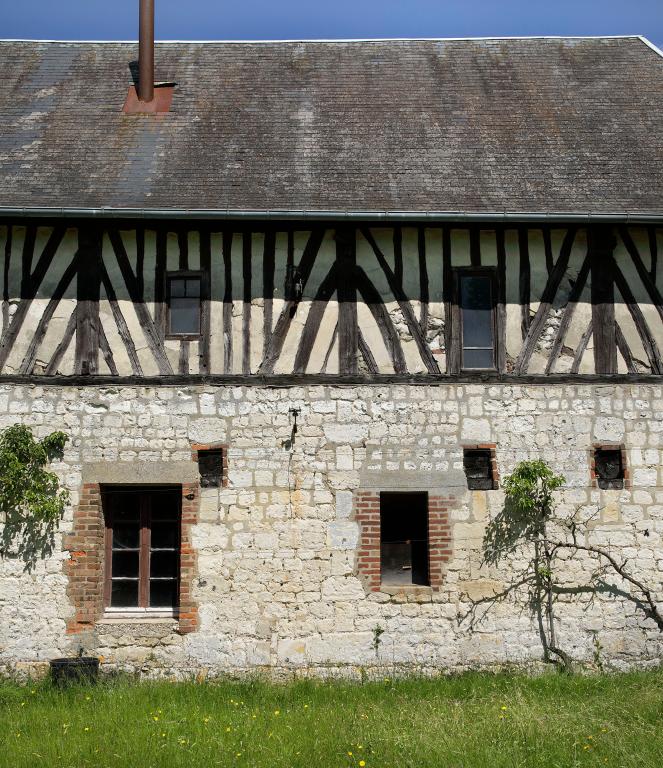 Les anciennes grange et écurie sont bâties sur un étage carré. Les murs pignons et le rez-de-chaussée des façades nord et sud sont appareillés en moellons calcaire et brique, tandis que l'étage des façades nord et sud est assemblé en pan de bois. Certaines pièces sont placées en écharpes ou guettes, indiquant l'ancienneté du bâtiment. Le toit à longs pans, terminé en croupe, est couvert d'ardoises.