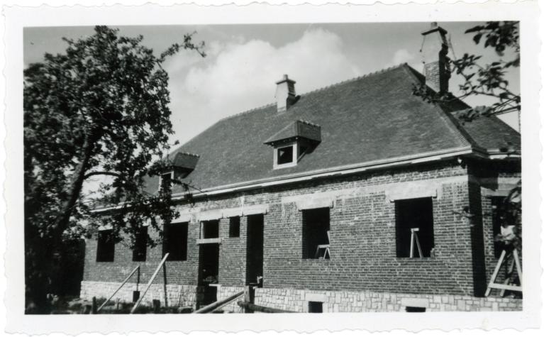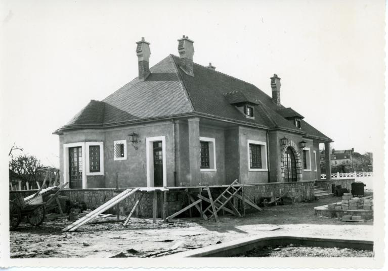 La maison reconstruite a été surélevée sur une terrasse et bâtie en rez-de-chaussée, contrairement à la maison initiale qui s'élevait sur un étage carré. Comme le montre les photographies de l'album Bai, les murs de la façade arrière ont été reconstruits en brique sur un soubassement en calcaire, probablement à partir des matériaux de récupération de la maison détruite. Les autres murs ont sans doute été montés en parpaings de béton et recouverts d'un enduit total. La façade sud présente un petit avant corps saillant au centre et deux parties latérales en renfoncement précédées par deux piliers en béton, rappelant les colonnes de la précédente maison. L'entrée latérale, au sud, est abritée dans un petit espace en saillie, couvert d'une amorce de toit conique. La toiture en croupe est couverte de tuiles plates et l'étage de comble est éclairé par deux lucarnes sur chaque façades (est et ouest). Une des pièces intérieures a été décorée de lambris par M. Taruba, menuisier et ébéniste à La Mailleraye-sur-Seine.