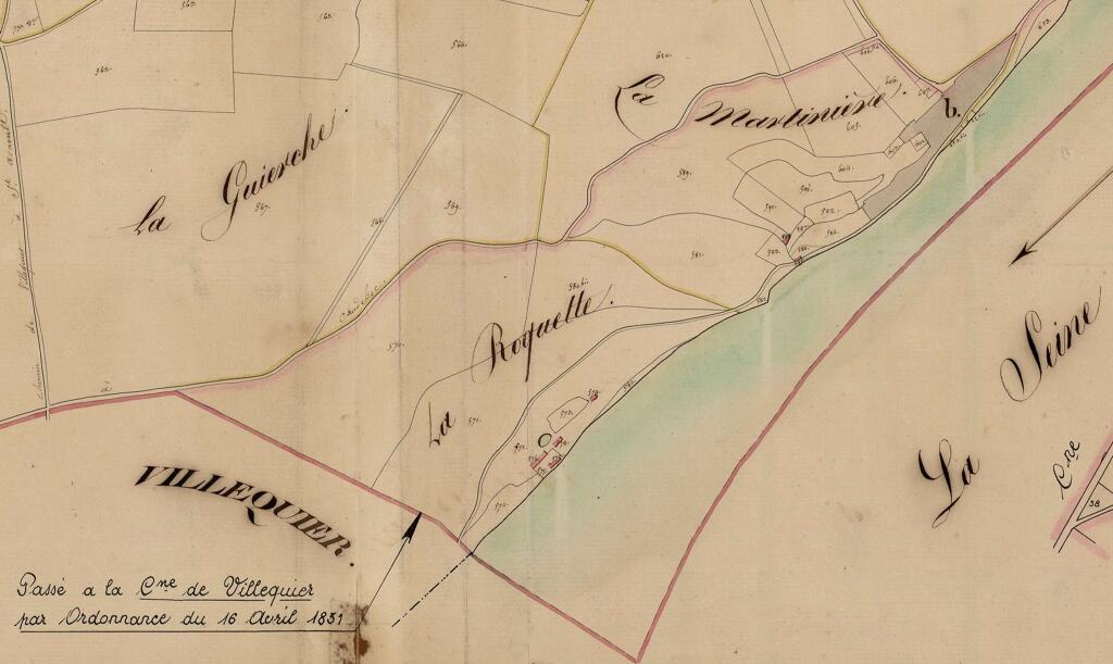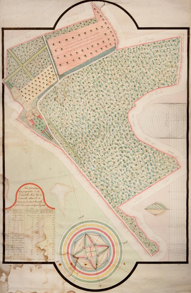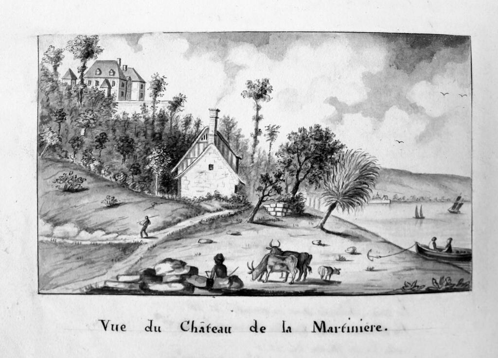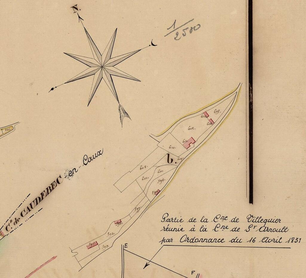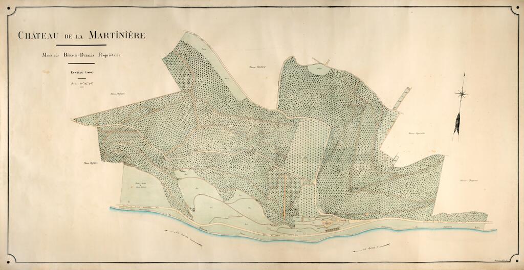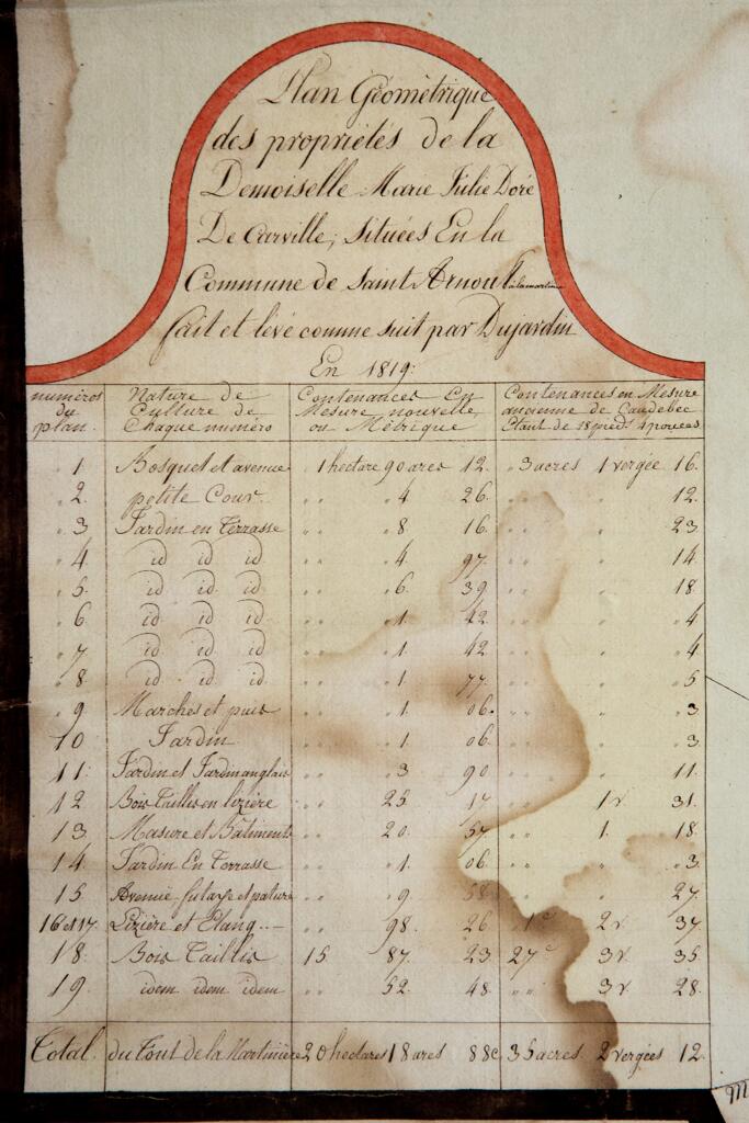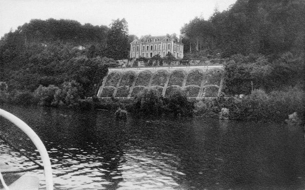 En prolongement du mur de soutènement, un mur dit "romain" est constitué de gros blocs rocheux monolithes. Le chemin de Barre-y-Va, permettant de rejoindre les hauteurs de la commune de Saint-Arnoult et du hameau de La Guerche, longe le mur nord de la propriété. L'ancienne hêtraie avait été plantée par les propriétaires du château. La "pierre tournante" est encore visible au sein des falaises calcaires qui dominent le chemin. Plus haut, l'ancienne maison du jardinier photographiée en 1900 est actuellement à l'état de ruines. Un jardin potager et des serres occupent une partie de la terrasse supérieure qui s'élève au nord de la propriété.