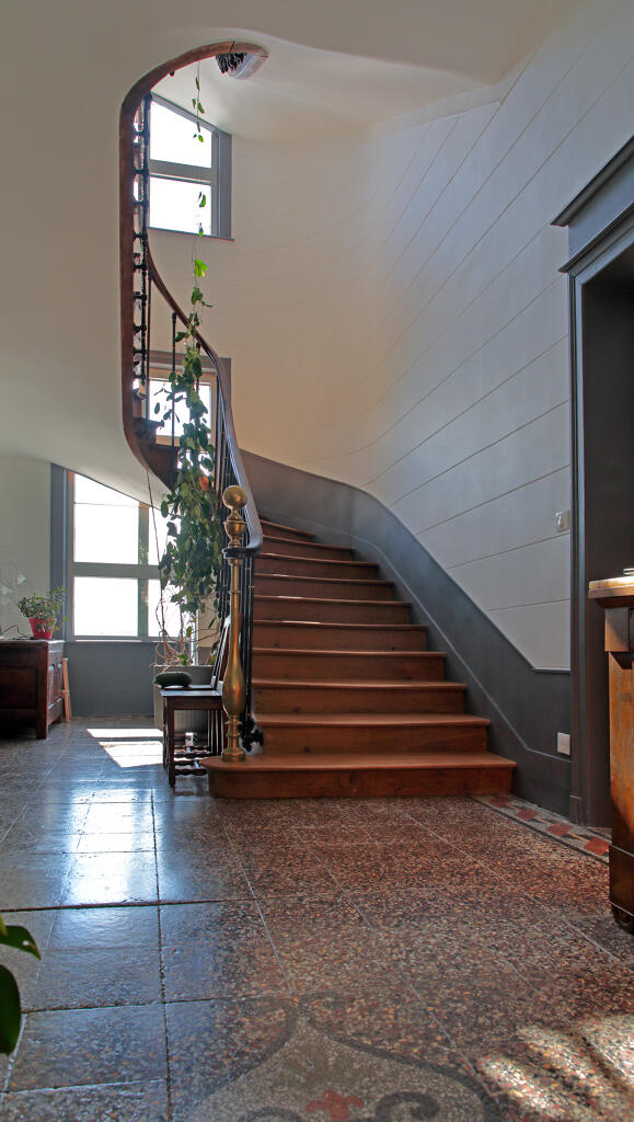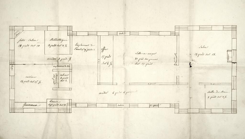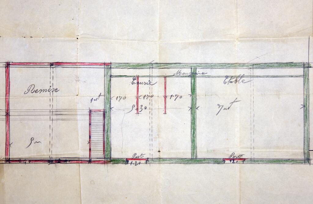 Les communs ayant servi d'écurie et peut-être d'orangerie sont bâtis en brique et rythmés par une suite d'arcs en plein cintre, complètement ouverts à l'origine et fermés par des portes en bois, dont une partie a été bouchée pour y installer des portes et fenêtres de dimensions plus standard. Le toit à longs pans en appentis est couvert en ardoise.