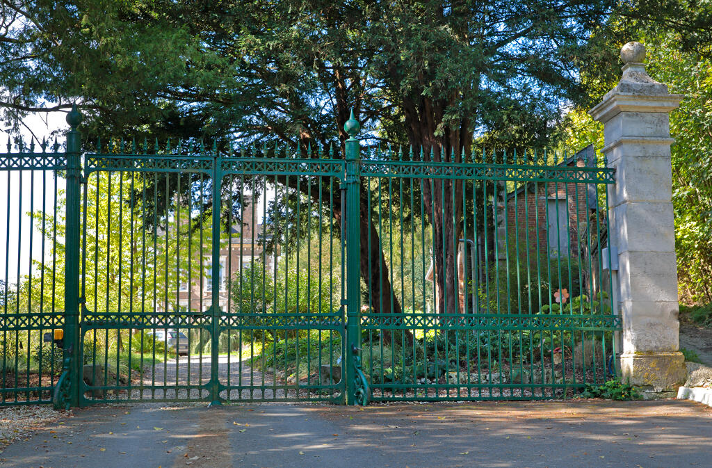 L'accès à la propriété se fait du côté ouest par un portail composé de deux piliers en pierre de section carrée et une grille en fer forgé.