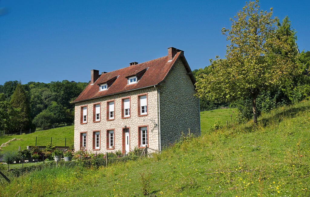 La maison reconstruite à l'emplacement de l'ancien moulin est construite en gros moellons calcaire et encadrement de baies en brique sur un étage carré et un étage de comble. Le toit à longs pans est couvert en tuiles mécaniques avec deux lucarnes rampantes.