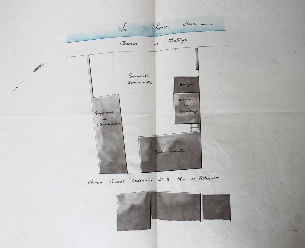 Au moment de sa mise en vente par la municipalité de Villequier, l'ancienne école de garçons était décrite de la façon suivante : « une propriété sise à Villequier sur le bord de la Seine comprenant : cour et jardin contenant environ cinq ares soixante-sept centiares, figurant au cadastre sous les n° 383-384 de la section B, édifiée d’une grande maison d’habitation couverte en ardoises, servant actuellement de logement à l’instituteur composée : au rez-de-chaussée de 3 pièces ; au premier étage, de 3 belles chambres dont 2 à feu et d’un grenier au-dessus ; d’un bâtiment également couvert en ardoises, actuellement à usage de classes ; d’un autre à usage de communs et d’un petit hangar. Cette propriété est bordée d’un bout par la Seine, le chemin de halage entre, d’autre bout par la rue de Villequier, d’un côté nord par un passage accédant à la Seine au-delà duquel l’hôtel est tenu par M. Koch et d’autre côté par un ruisseau et au-delà par M. Hulin et Mme Lecourt. ».