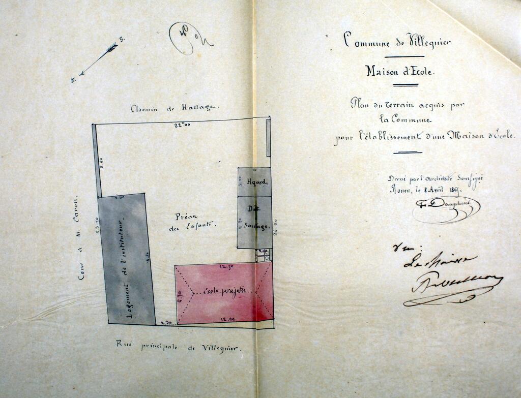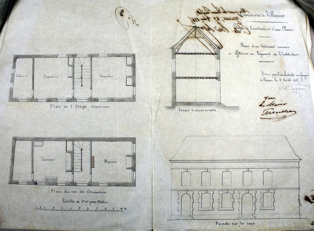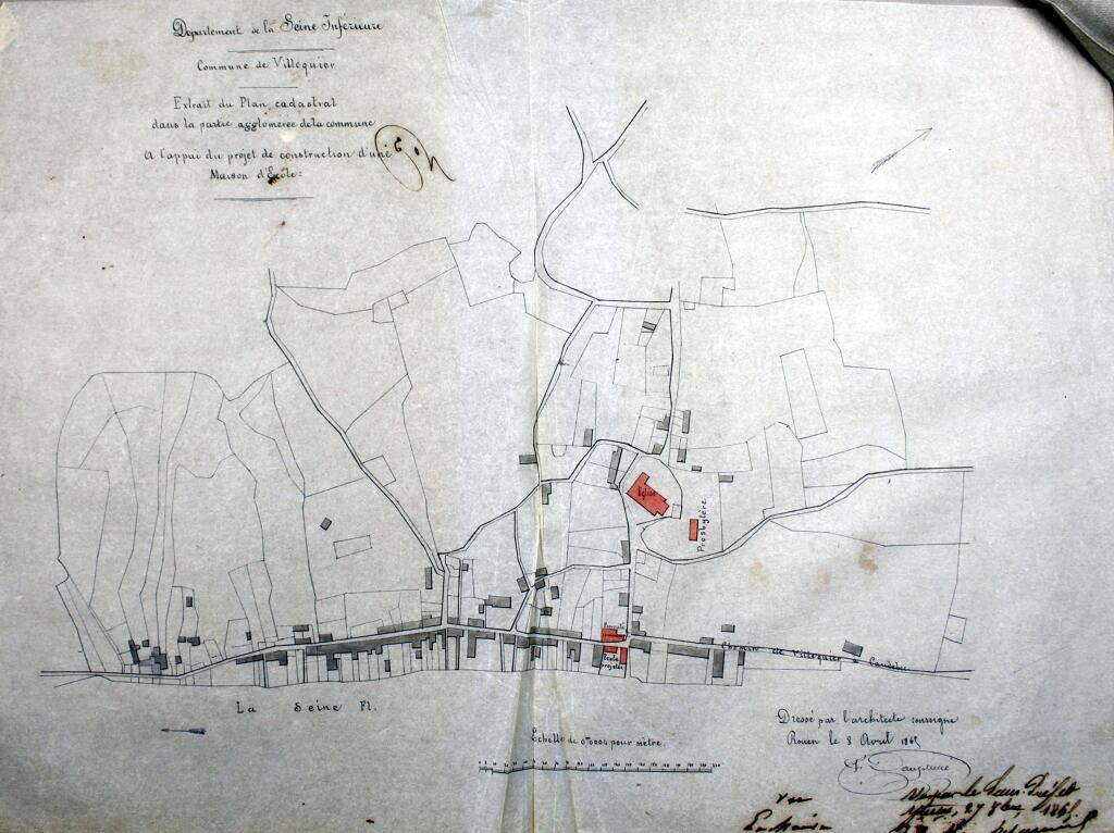 En 1866, la municipalité de Villequier, acquiert auprès des époux Canivet un immeuble bâti le long du chemin de halage, d’une contenance de 5 ares, moyennant la somme de 7 000 F pour servir à l’établissement d’une maison d’école de garçons avec mairie. Les travaux d'appropriation de l'école de garçons sont exécutés par les sieurs Collé et Vardon, entrepreneurs à Rouen sous la direction de M. Dauphiné, architecte dans la même ville. La réception des travaux a lieu le 14 novembre 1868, la dépense totale s’élevant à 3 953,84 F.