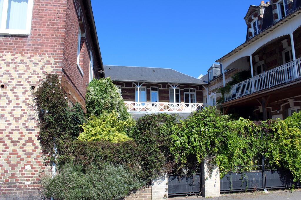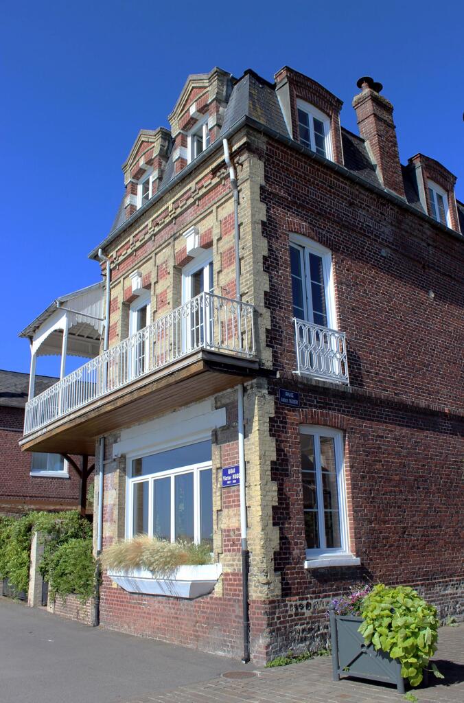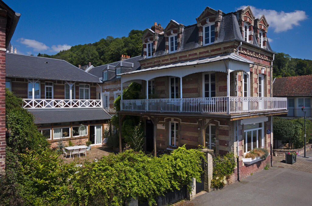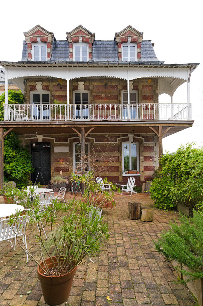 La demeure a été agrandie et modifiée au moment de sa transformation en hôtel. Trois corps de bâtiment, élevés sur un étage carré (et un étage de comble à surcroît pour l'aile est), renferment une petite cour fermée par un muret de clôture et grille en fer forgé qui ont été ajoutés postérieurement. Les cartes postales du début du 20e siècle montrent que la terrasse de l'établissement était autrefois largement ouverte sur la promenade du quai. Les deux corps de logis, placés en équerre au nord et à l'est de la parcelle, sont maçonnés en brique industrielle avec un jeu de bichromie créé par l'emploi d'une brique de tonalité beige (placée en assises alternées, sur les encadrements de baie ou en motif de croisillons). L'étage de comble à brisis, surmontant l'aile est, est éclairé par une série de lucarnes mansardes à fronton triangulaire.