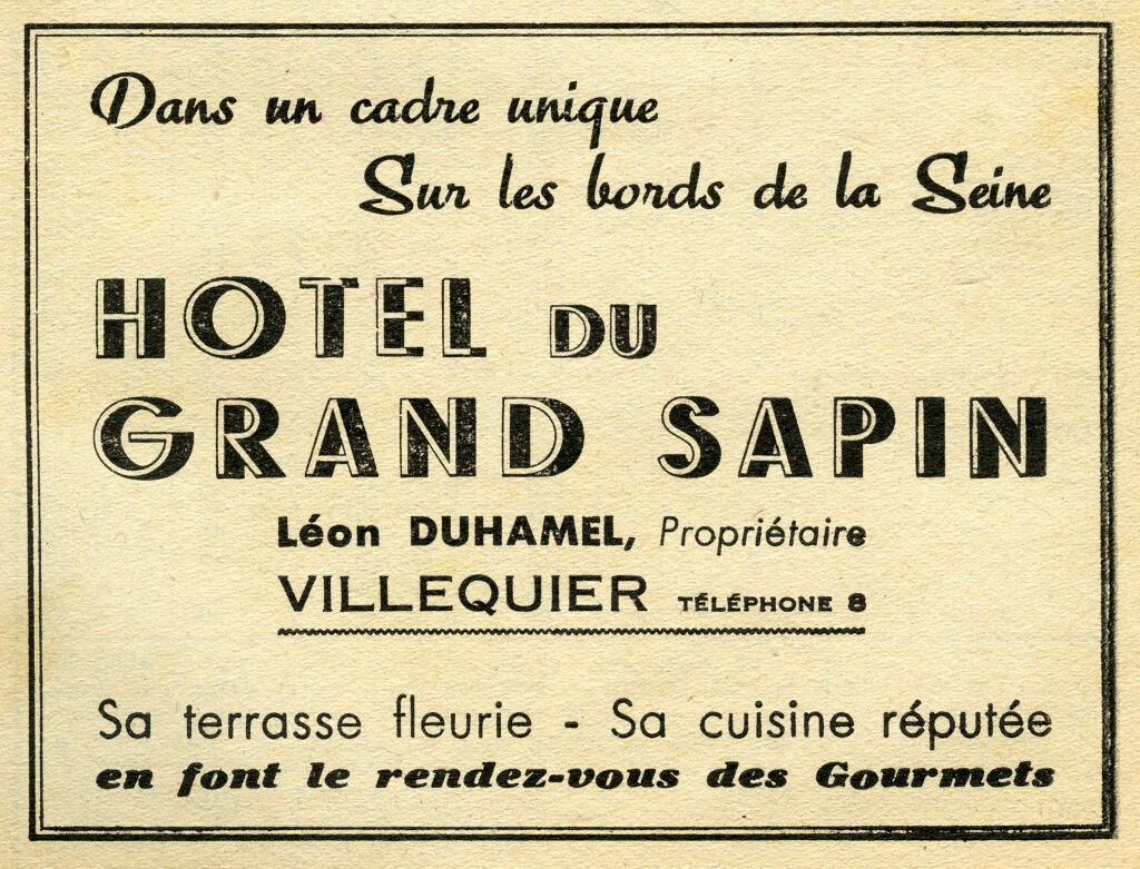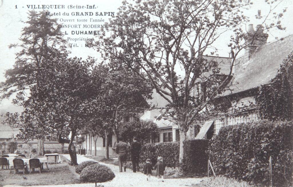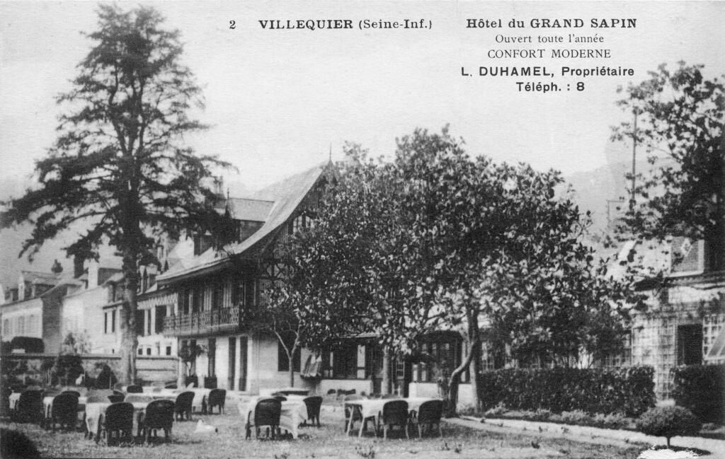 Léon Duhamel qui avait dirigé l’hôtel du château de Caudebec y fonde l’hôtel du Grand Sapin qui doit son nom à l’imposant conifère qui ombrageait alors sa terrasse. Son emplacement de choix permettait d’observer les bateaux qui ralentissaient pour la relève des pilotes de Seine. L’hôtel du Grand Sapin était un établissement très emblématique du bord de Seine à une époque où l’hôtellerie et la restauration avaient le vent en poupe.
