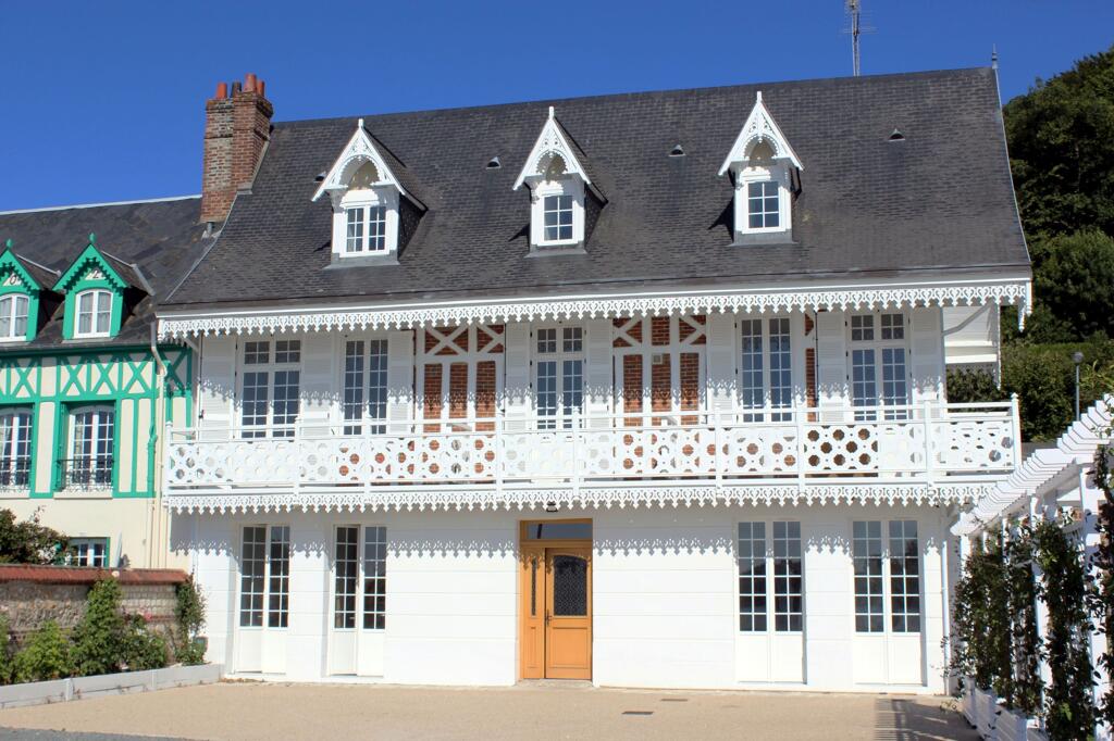 L'ancien hôtel, actuellement appelé la "White house", arbore une architecture qui évoque le style "chalet" des stations balnéaires. Côté Seine, l'ossature en pan de bois peinte en blanc est garnie d'un galandage en brique et agrémentée d'éléments décoratifs en bois finement ciselés : croix de Saint-André, lambrequins sur le débord du toit, balcon filant avec balustrade ajourée abritant le rez-de-chaussée, lucarnes à chevalet avec lambrequins éclairant le comble. Côté rue, la façade nord est appareillée en moellon calcaire et chaînages en brique au rez-de-chaussée. Le toit à longs pans est couvert en ardoise.