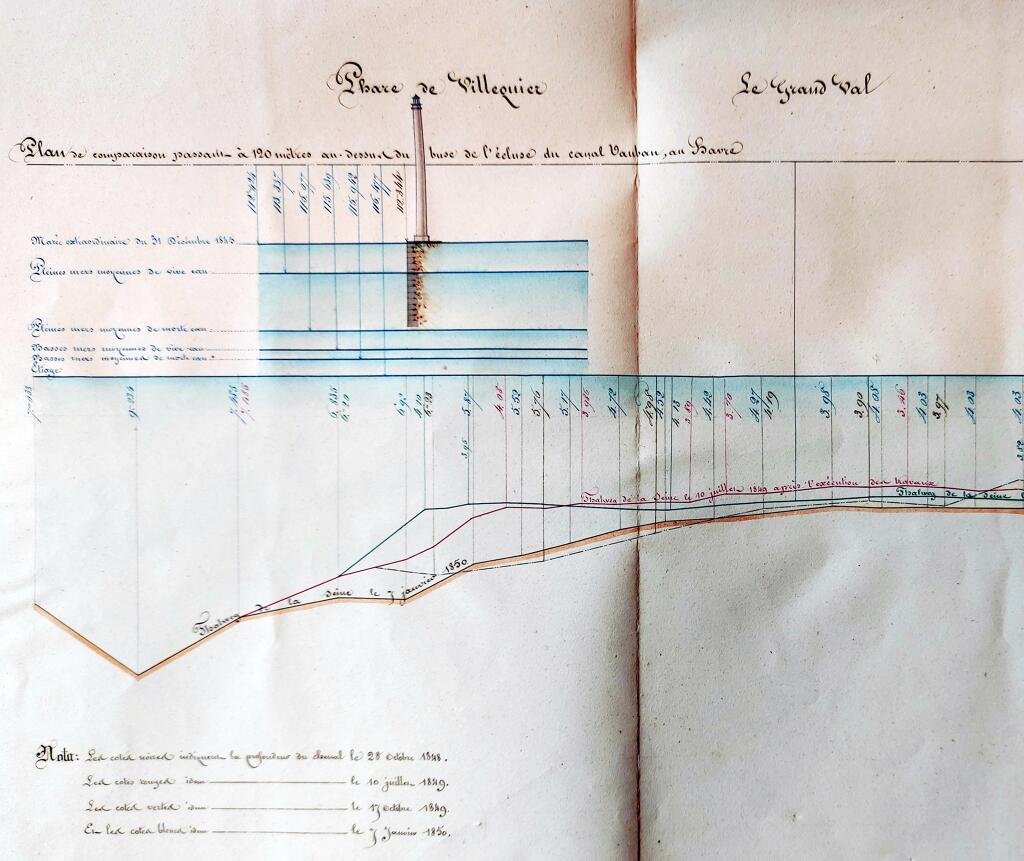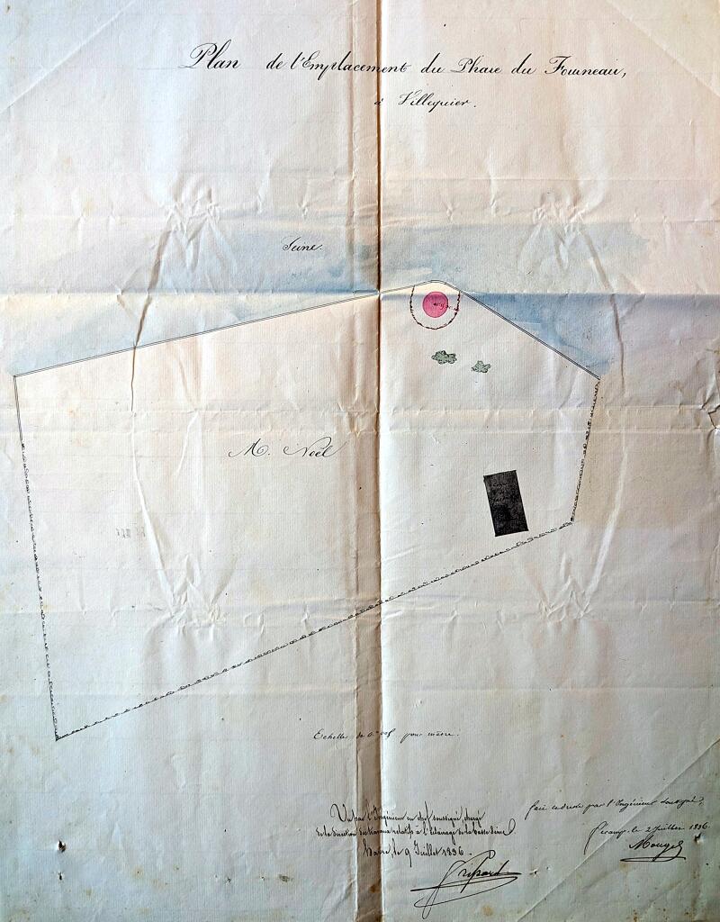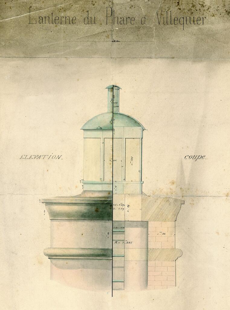 Archives nationales. CP/F/14/17526/18, pièces 192 à 194 : lanterne et appareil du phare de Villequier, dressés par Ernest-Joseph PRUVOST, conducteur, 10 décembre 1853.