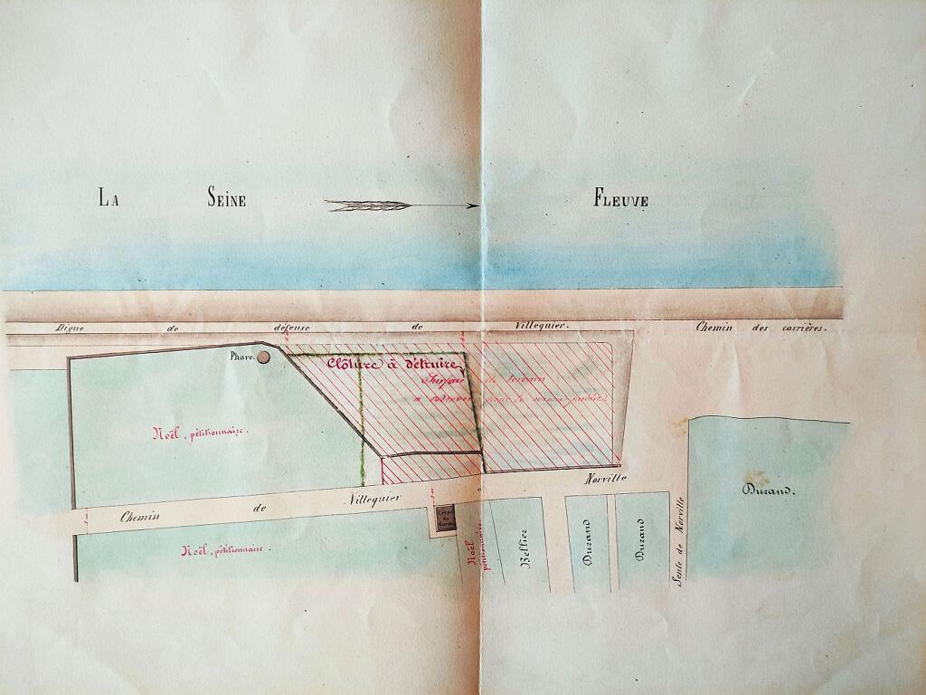 AD Seine-Maritime. Série S. Sous série 3S : navigation intérieure. 3S 157 : travaux de défense du village de Villequier (1847-1903)
