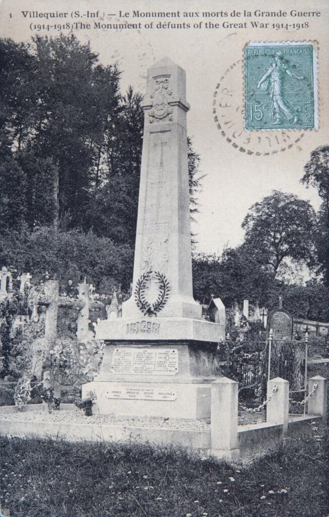 Le monument aux morts de Villequier, comme celui de Saint-Wandrille-Rançon, a été dessiné par Pierre Lefebvre, architecte à Rouen. Il a été réalisé et mis en place par Gustave Houdeville, entrepreneur de maçonnerie domicilié à Villequier.