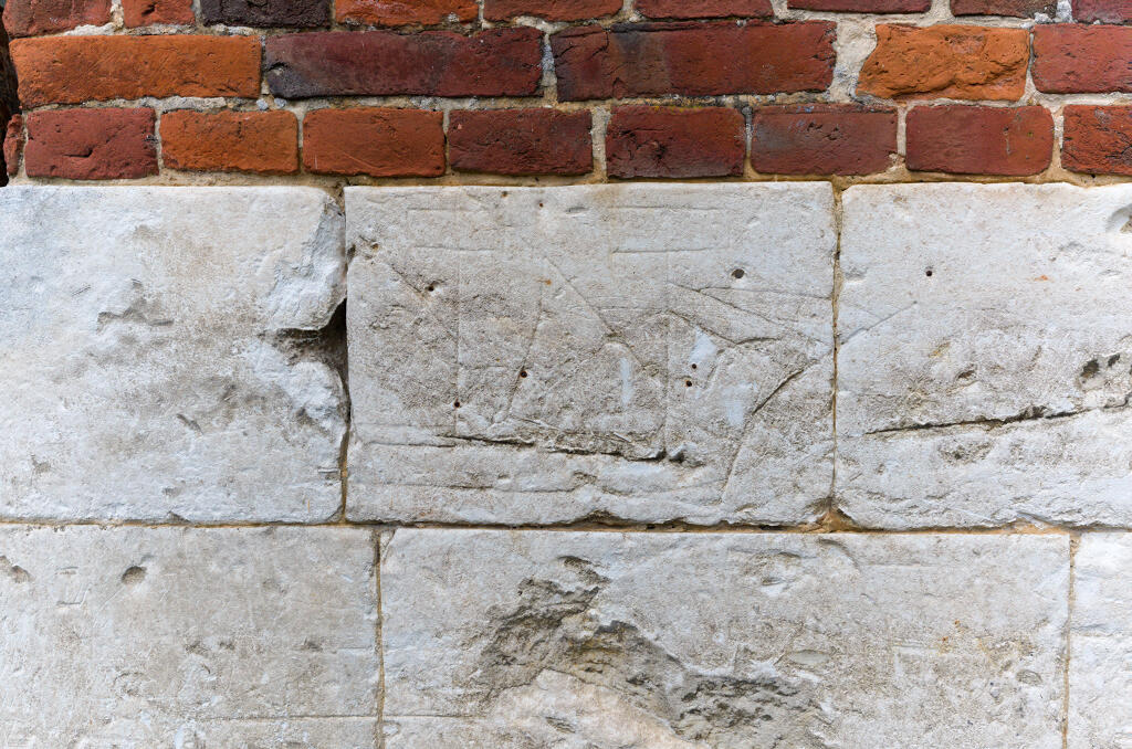 Dans cette propriété mitoyenne du château de Caumont, le bâtiment agricole fermant le côté ouest de la cour a probablement été édifié entre la fin du 18e siècle et le début du 19e siècle. Les assises en pierre sont gravées de graffiti de navires correspondant à des remplois d'éléments plus anciens (présence d'une date inscrite à l'envers).