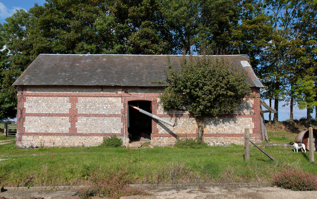 - l'étable est construite en silex et chaînage en brique. Son toit est couvert en ardoise.