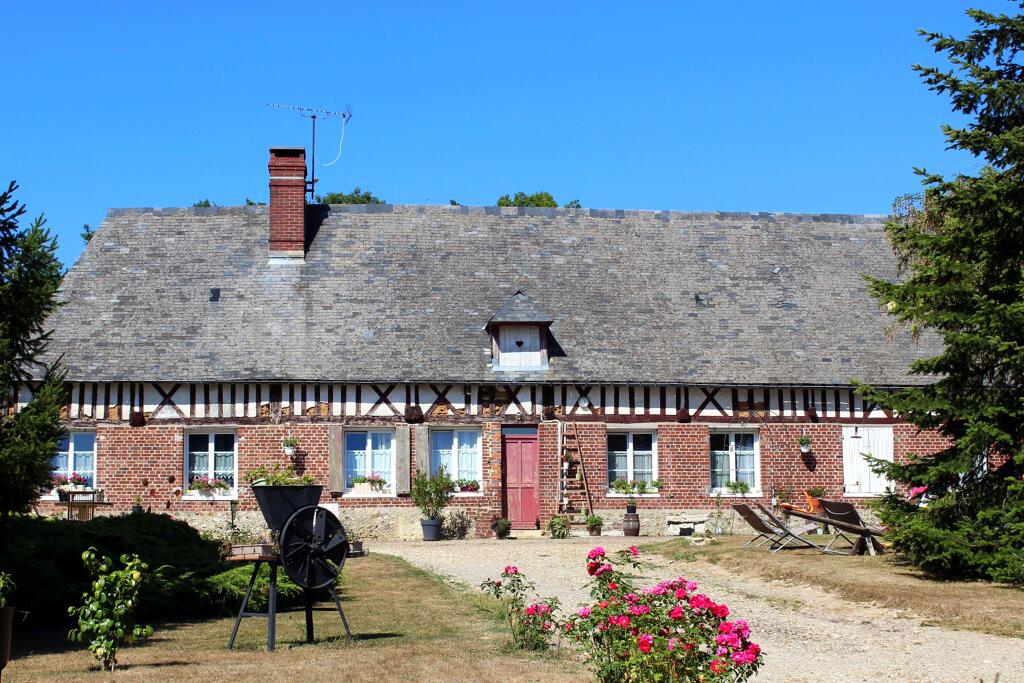 A l'image des clos masures du pays de Caux, ce grand corps de ferme se compose de bâtiments agricoles répartis au sein d’une cour entourée d’un talus planté abritant quelques arbres fruitiers.