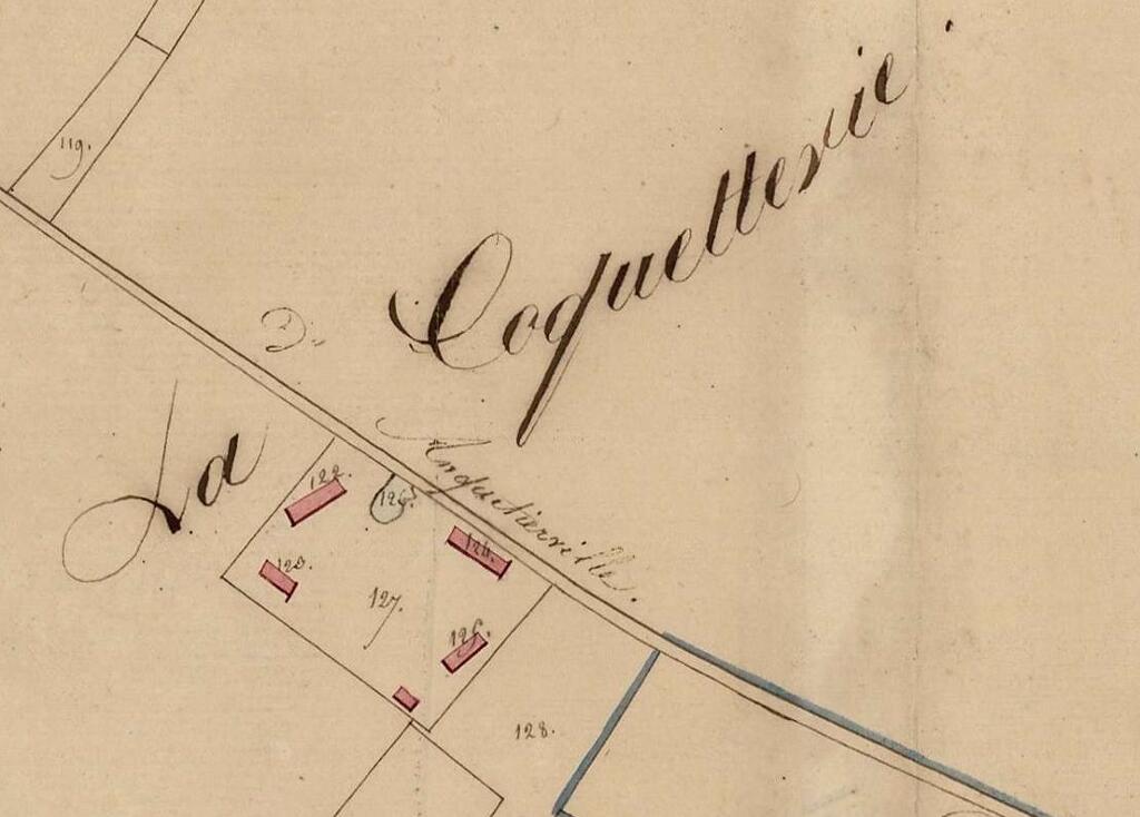 La "masure de la Coquetterie" est mentionnée et représentée sur la carte des terroirs de Villequier et de Caudebec levée au 18e siècle (conservée à la BNF). Elle est reportée dans une configuration à peu près identique sur le cadastre napoléonien dressé sur la commune en 1818.