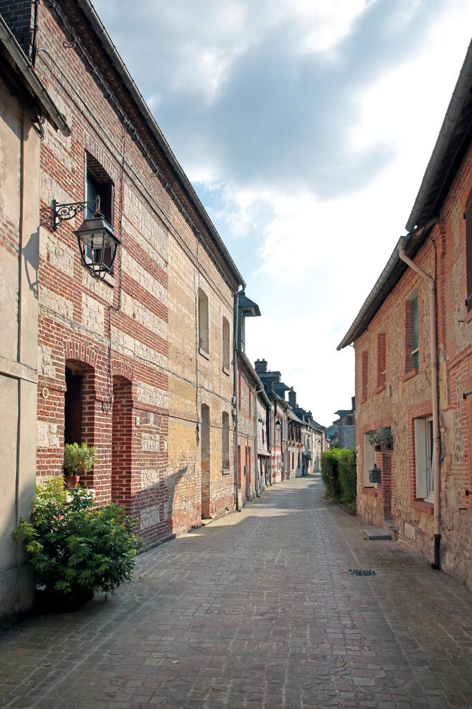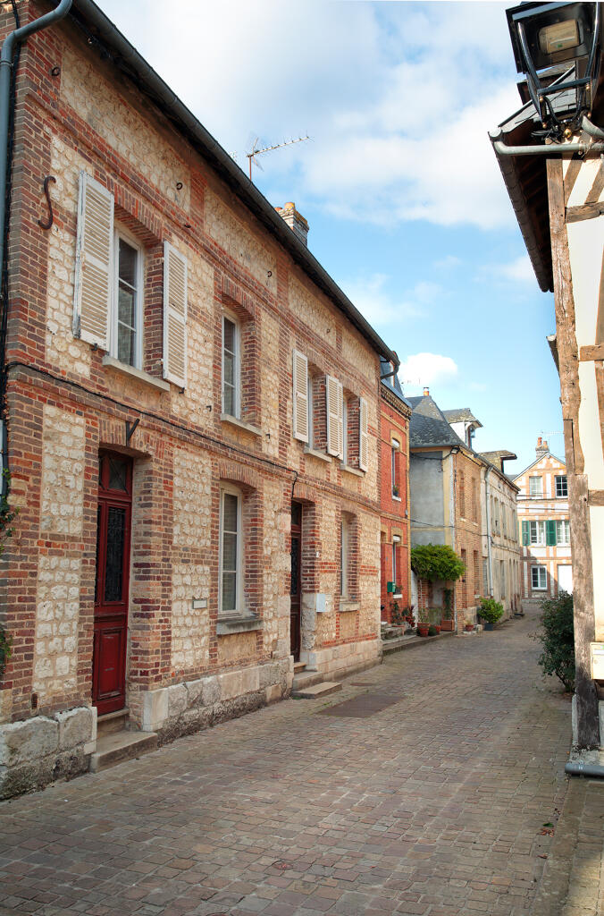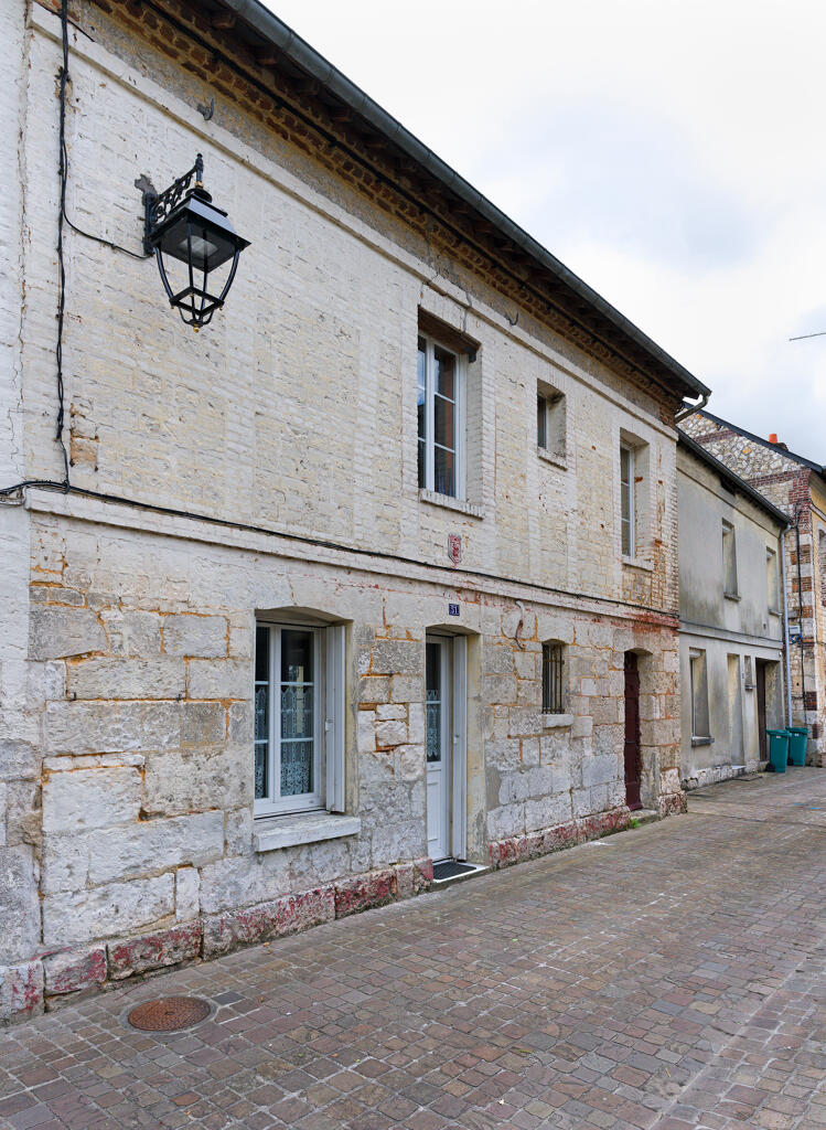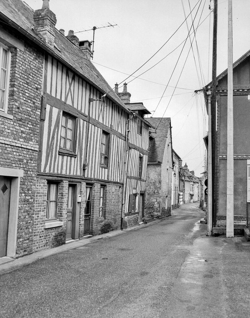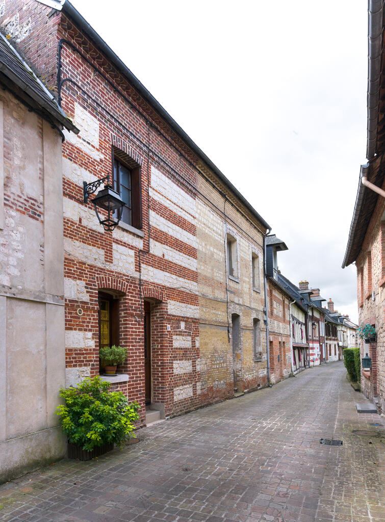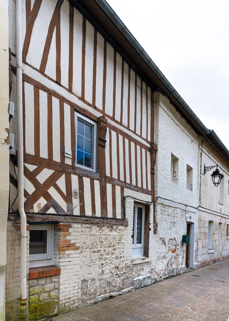 Les plus anciennes, bâties en pan de bois, présentent un étage en encorbellement. Les autres sont construites en maçonnerie de moellons calcaire, brique artisanale et silex. Les élévations sont homogènes sur l'ensemble de la rue : rez-de-chaussée surmonté d'un étage carré et un étage de comble.