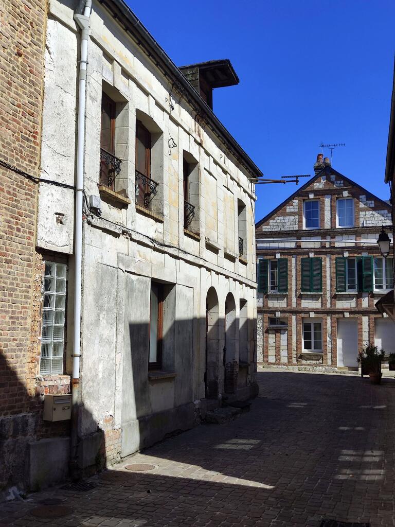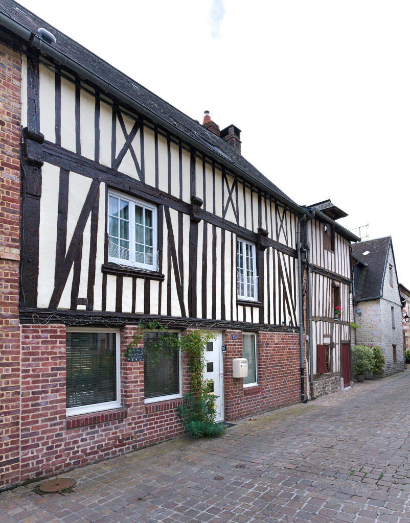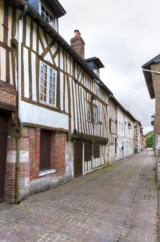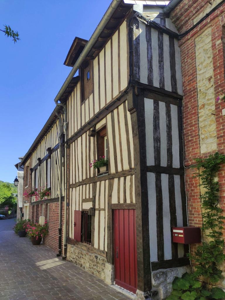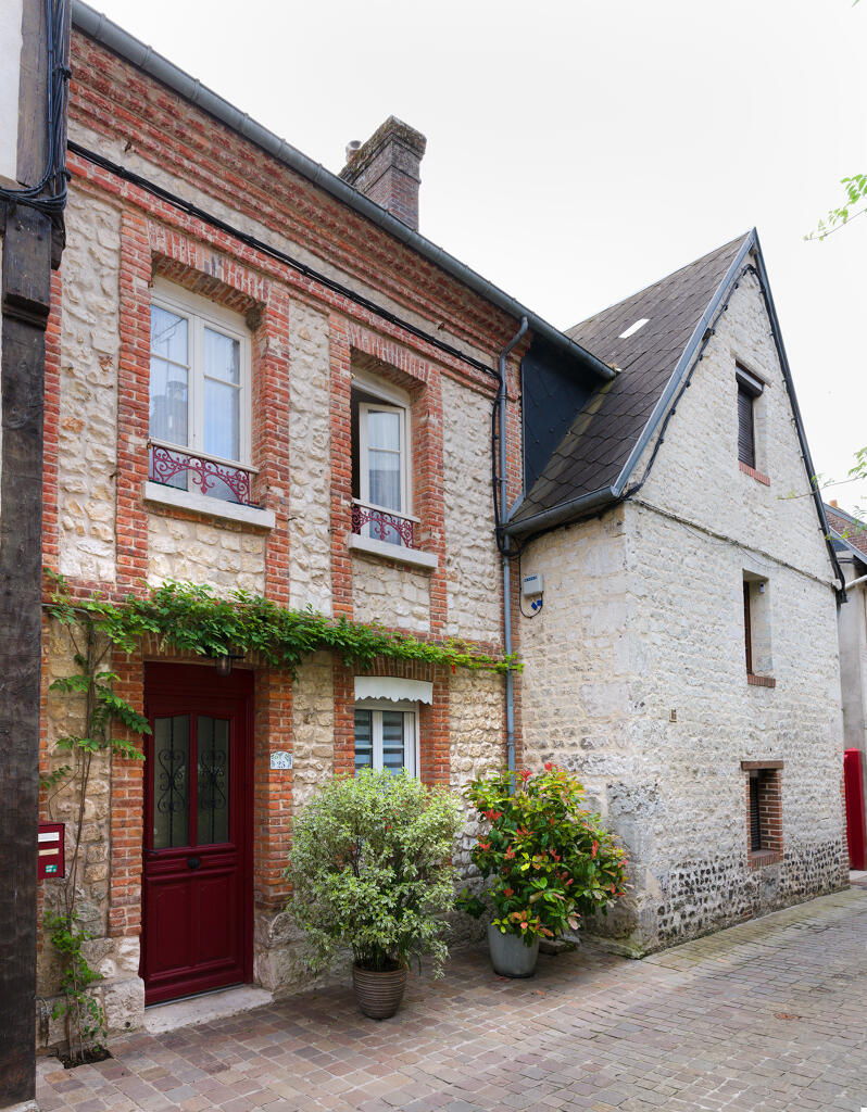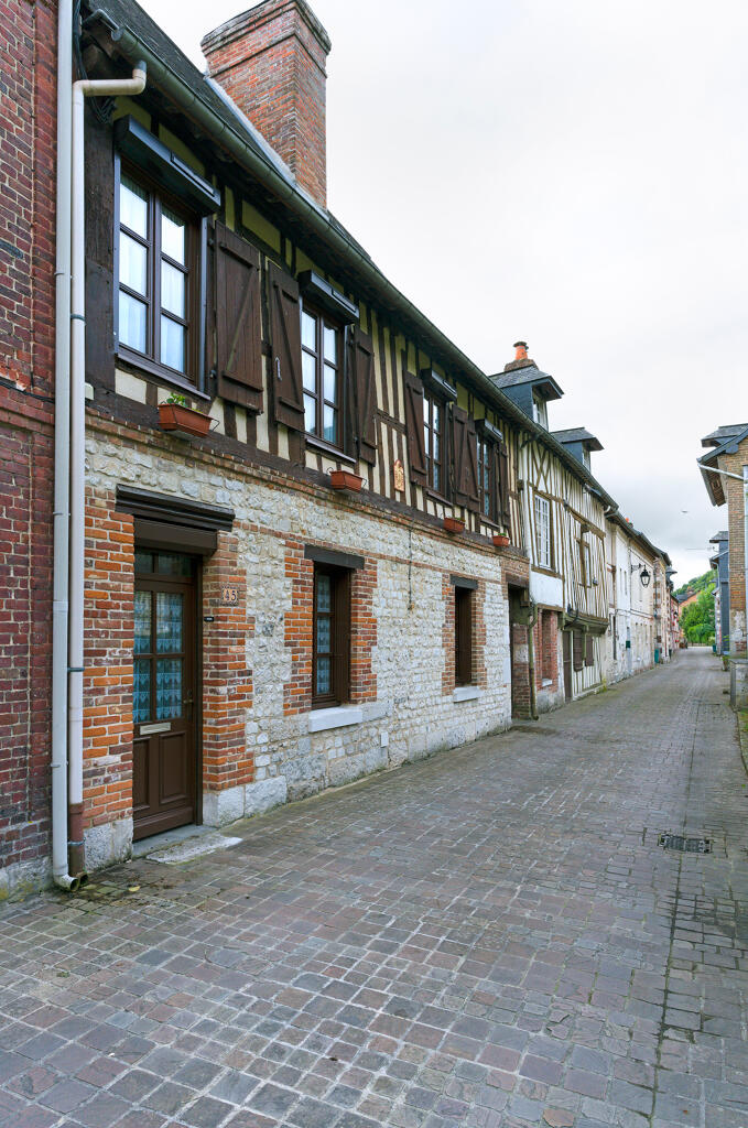 Les plus anciennes, bâties en pan de bois, présentent un étage en encorbellement. Les autres sont construites en maçonnerie de moellons calcaire, brique artisanale et silex. Les élévations sont homogènes sur l'ensemble de la rue : rez-de-chaussée surmonté d'un étage carré et un étage de comble.