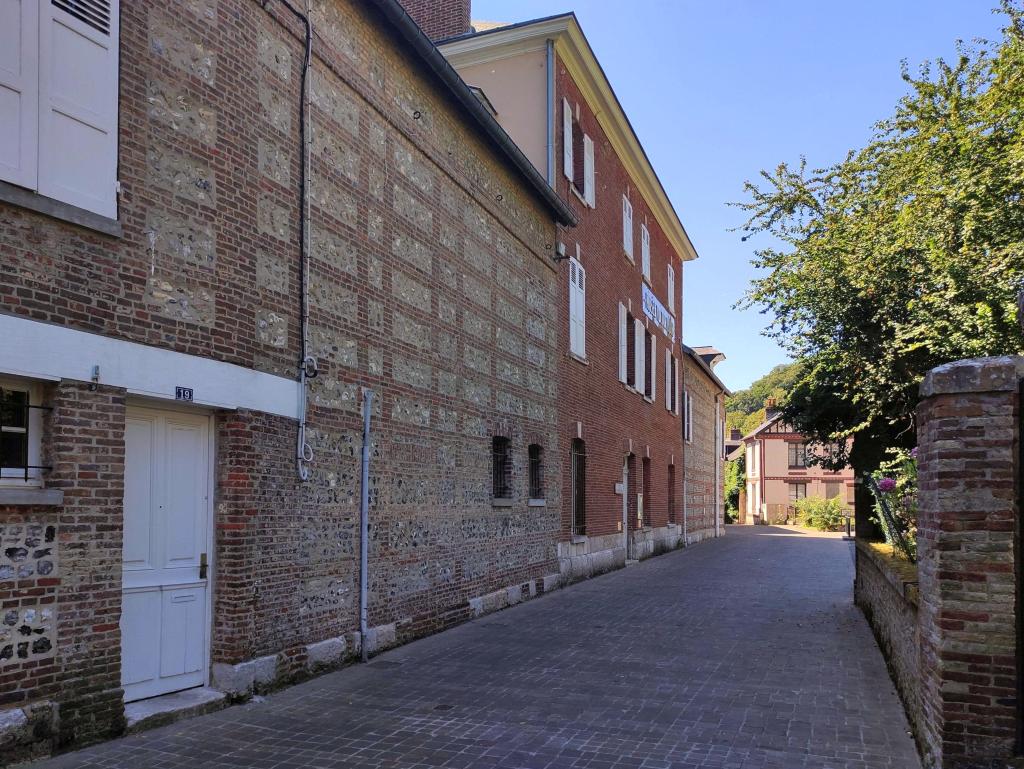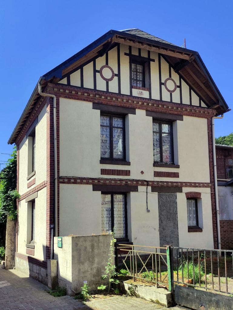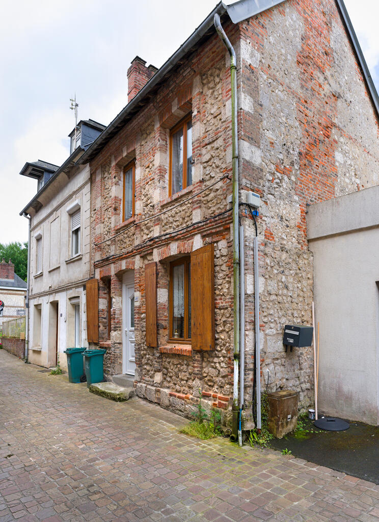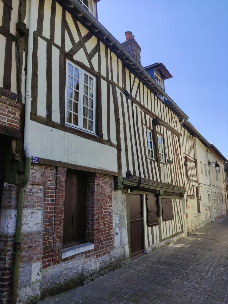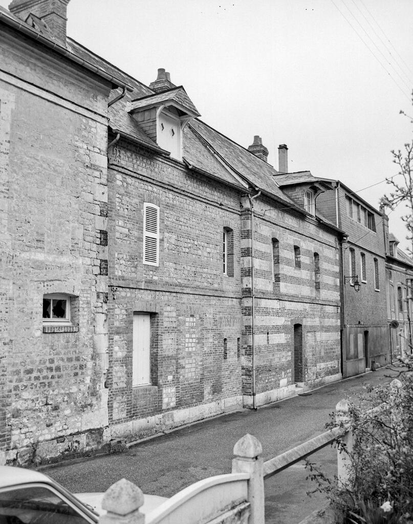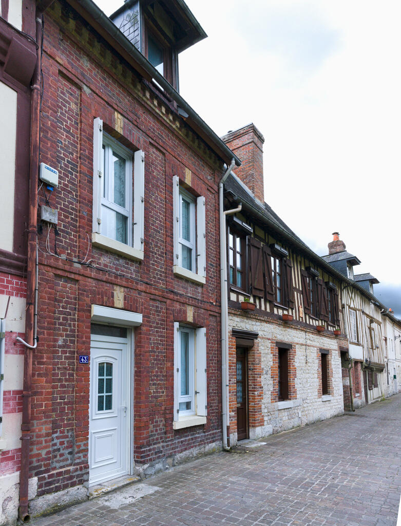 Les plus anciennes, bâties en pan de bois, présentent un étage en encorbellement. Les autres sont construites en maçonnerie de moellons calcaire, brique artisanale et silex. Les élévations sont homogènes sur l'ensemble de la rue : rez-de-chaussée surmonté d'un étage carré et un étage de comble.