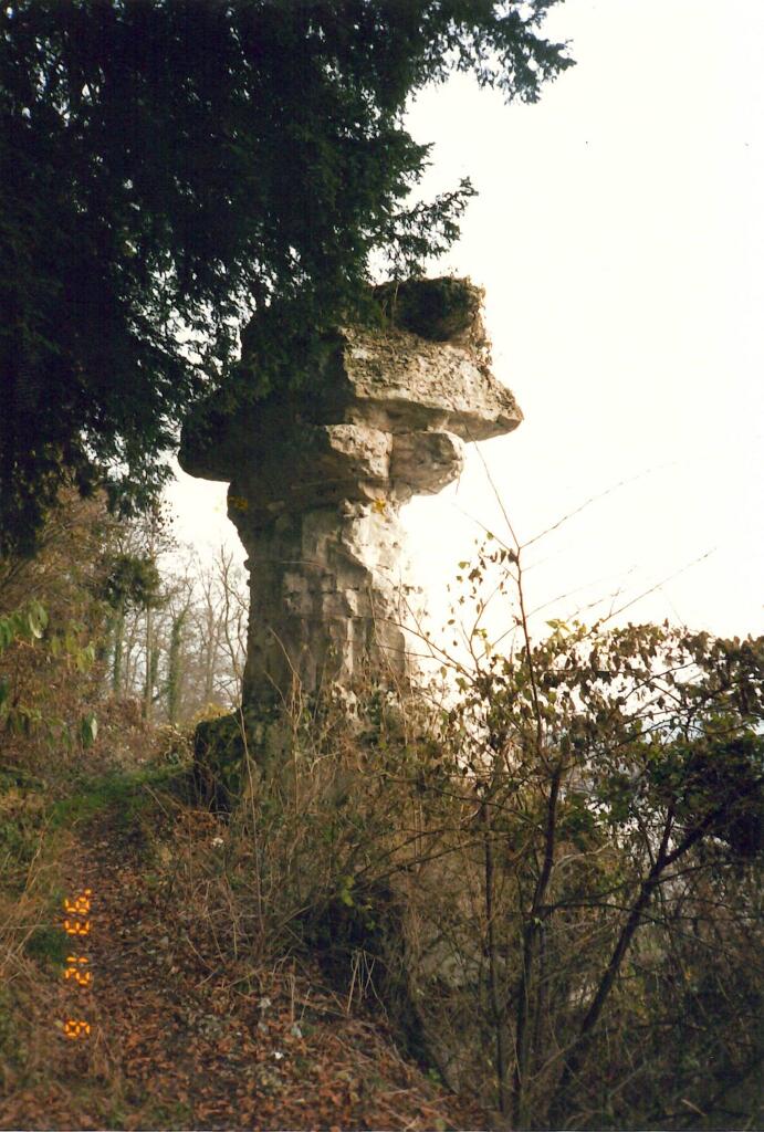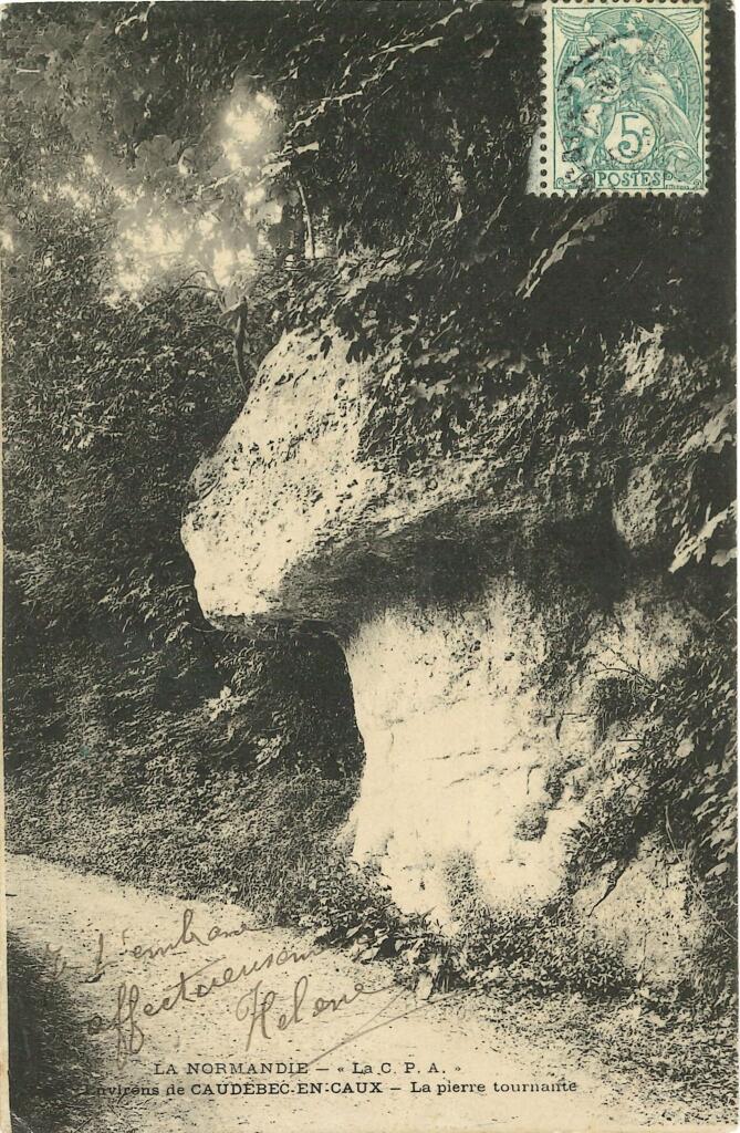 Une monographie datée de 1888 apporte la précision suivante : "Une légende qui nous paraît plus ancienne, fait de la Pierre Tournante un monument druidique, mais elle est insoutenable quand on considère que cette pierre est un monolithe dont les assises correspondent exactement avec celles du rocher de derrière. Il ne faut donc voir dans cette curiosité, célèbre dans la contrée, qu'un exemple entre mille de fables dites du diable produites par l'érosion atmosphérique des bancs tendres de la craie, laissant presque entiers les bancs durs."