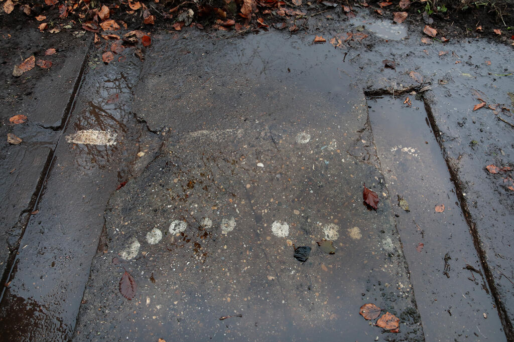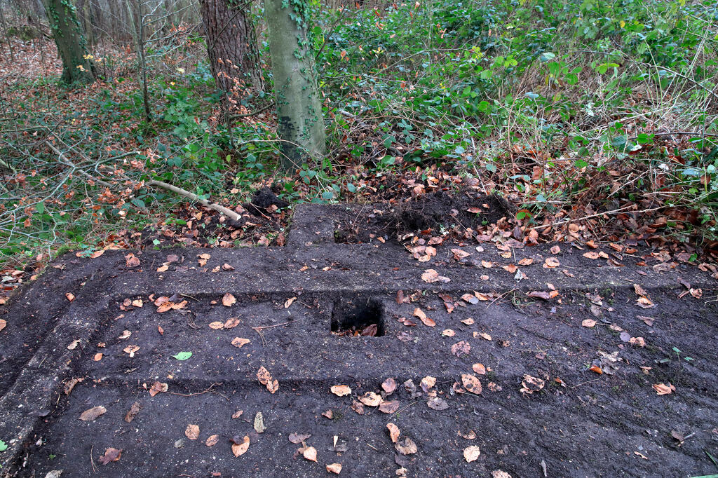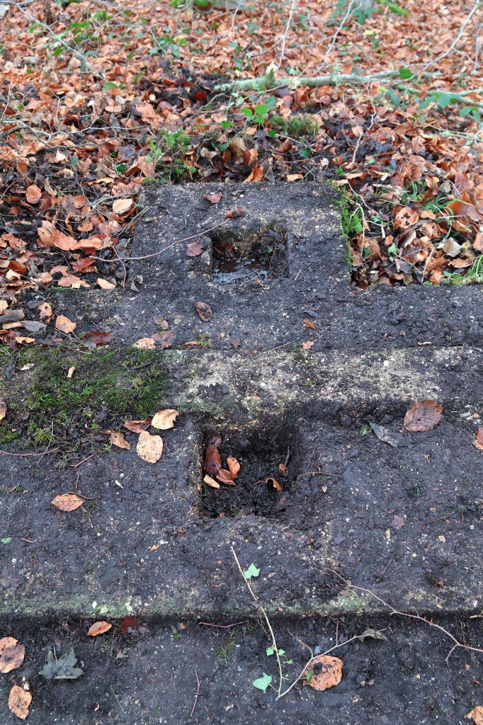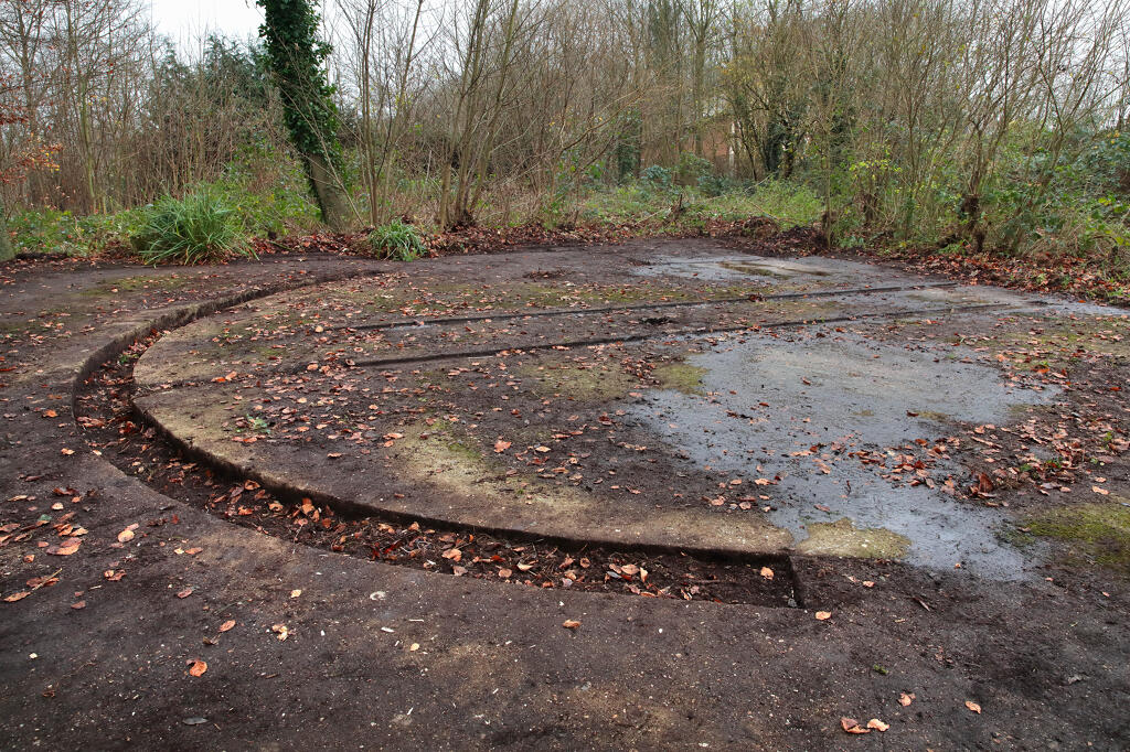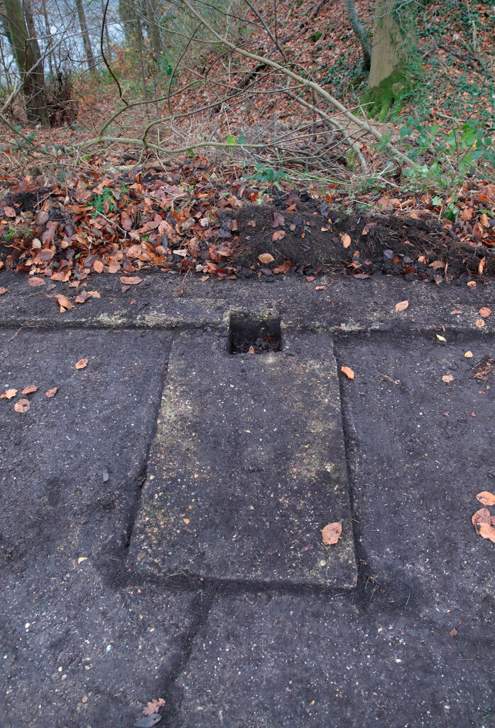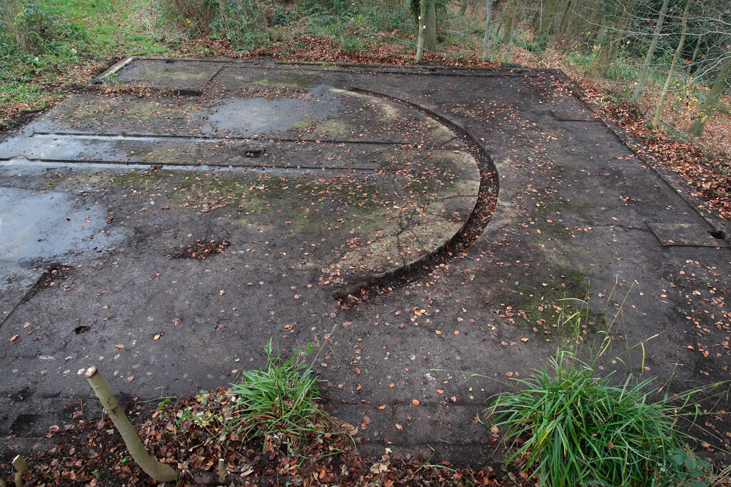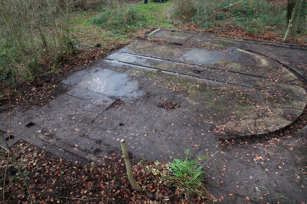 3/ Dalle de tir. N. Dufour voit la rampe de lancement "à droite de l'allée principale" (Bibl) ; située au nord-ouest du site, elle est actuellement partiellement masquée par des annexes d'une propriété privée.