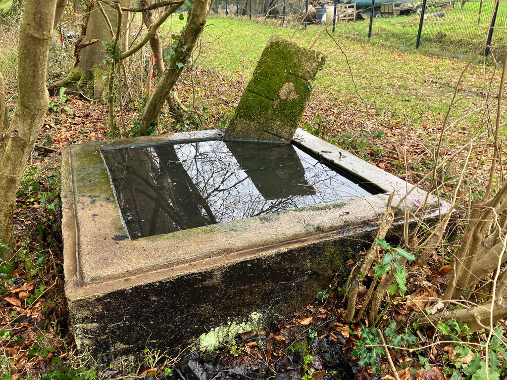 4/ Cuve à eau. Une cuve est visible, à proximité de la dalle de tir, en bordure d'allée. En place.