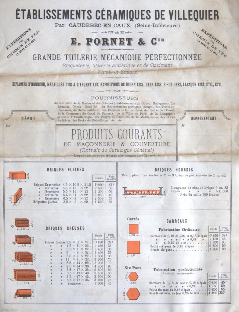 Tuilerie et briqueterie portant le nom de son directeur, Etienne Pornet. La briqueterie tuilerie de Villequier est une filiale de la tuilerie et briqueterie dite "Tuilerie mécanique perfectionnée de Normandie" (Argences, Calvados).
