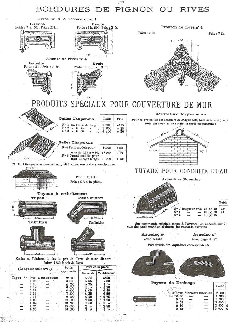 Dénominationsbrique, tuile, pot, ornement, corniche, acrotère, cheminée, bas-relief
