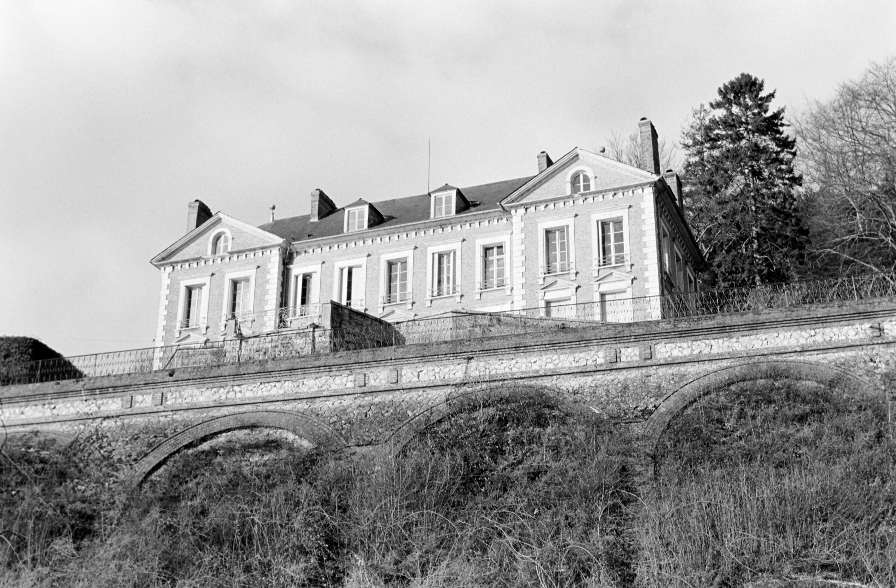 Façade sud, vue depuis le mur de soutènement.- Photographie de l'Inventaire général, 1974.Immatriculation