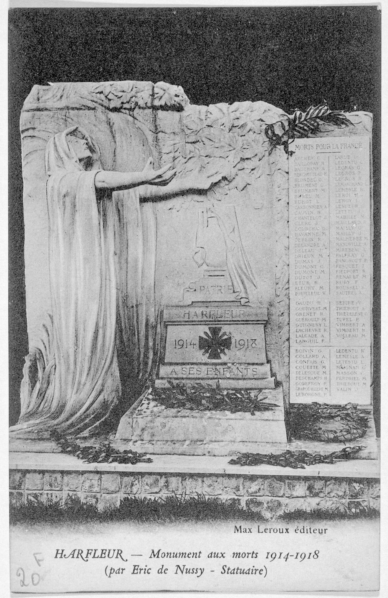 Harfleur - Monument aux morts 1914-1918 (Eric de Nussy statuaire).- Carte postale, Max Leroux éditeur [vers 1925]. (collection particulière).Immatriculation