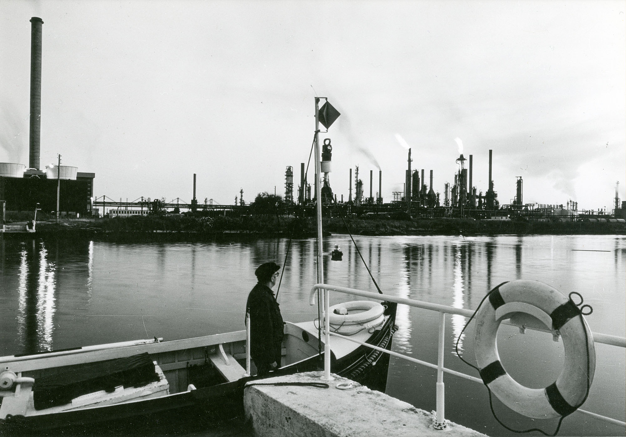 Passeur sur le canal de Tancarville pour le personnel de la raffinerie.- Photographie, vers 1970 (Coll. Total).Immatriculation