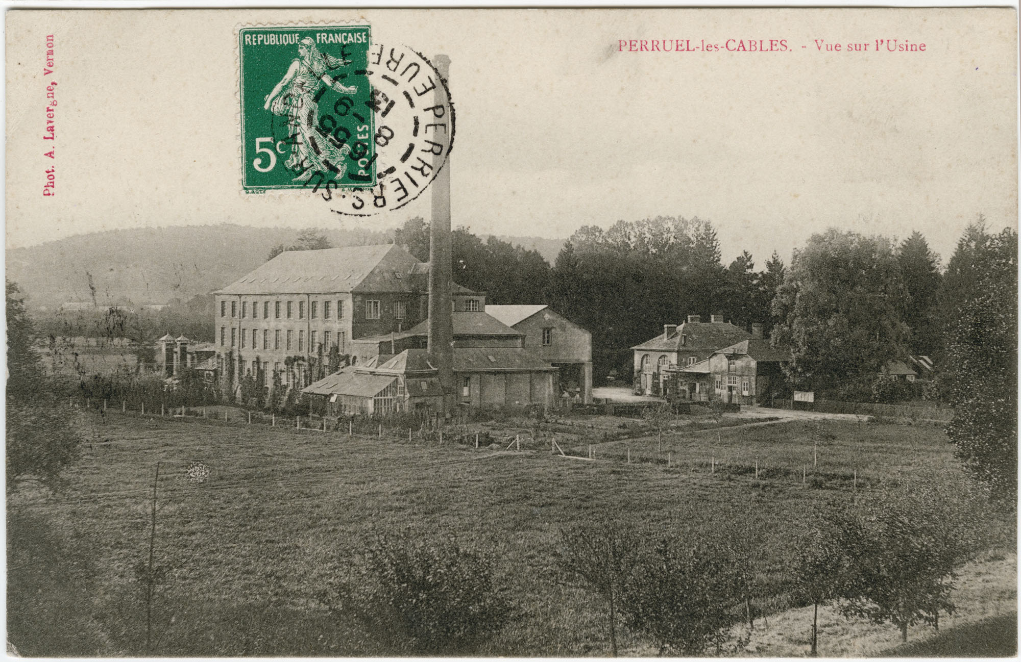 Vue sur l'usine.- Carte postale, phot. A. Lavergne, Vernon, vers 1910 (Collection particulière).Immatriculation