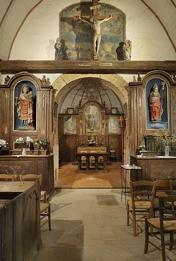 Mur diaphragme vu depuis la nef, les autels secondaires et la poutre de gloire.Immatriculation