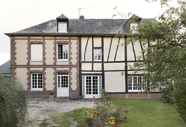 Vue d'ensemble de la façade nord-ouest du moulin et logement du meunier.Immatriculation