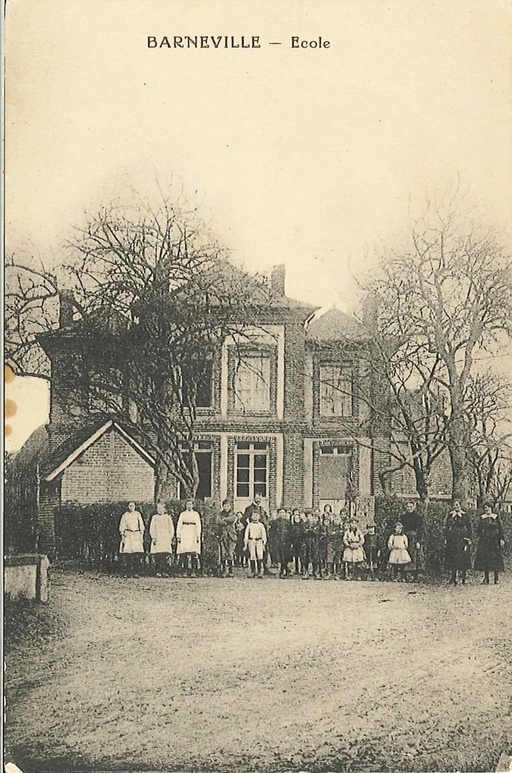 Barneville - Ecole.- Carte postale ancienne, collection du Parc naturel régional des Boucles de la Seine normande.Immatriculation