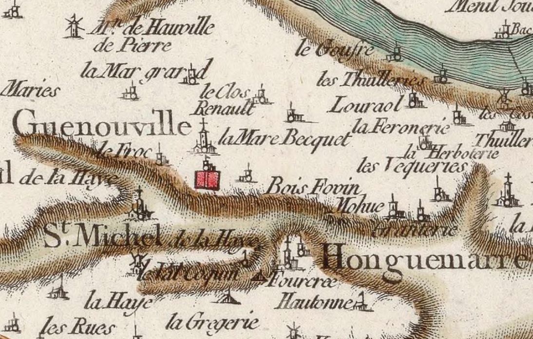 Extrait de la carte générale de France, établie sous la direction de César-François Cassini de Thury, n°25 [Rouen], 8e feuille, vers 1780.Immatriculation