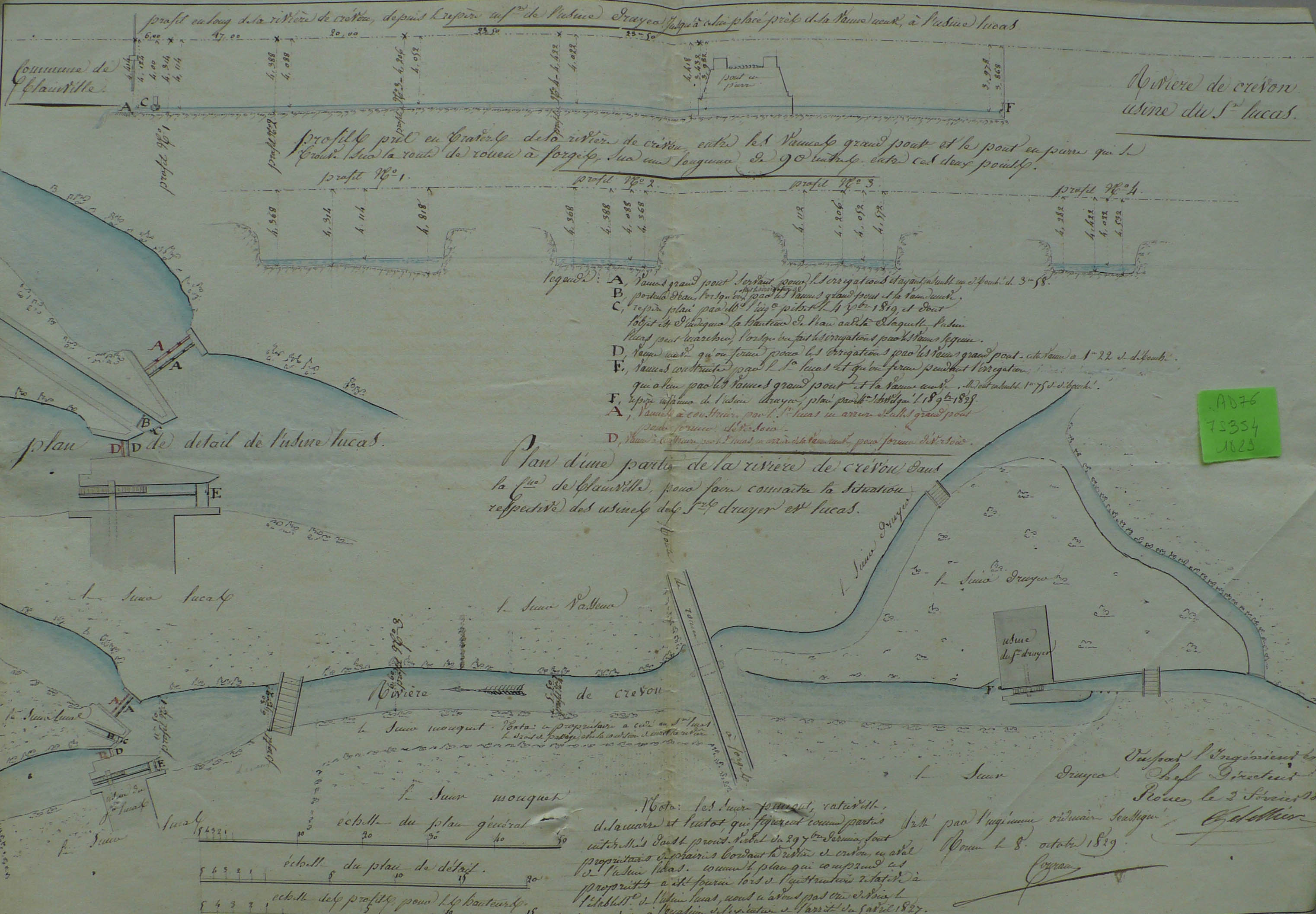 Plan de situation de l’usine Lucas et de l’usine Druyer et plan masse des aménagements hydrauliques du moulin Lucas, 8 octobre 1829 (AD Seine-Maritime. 7 S 354).Immatriculation