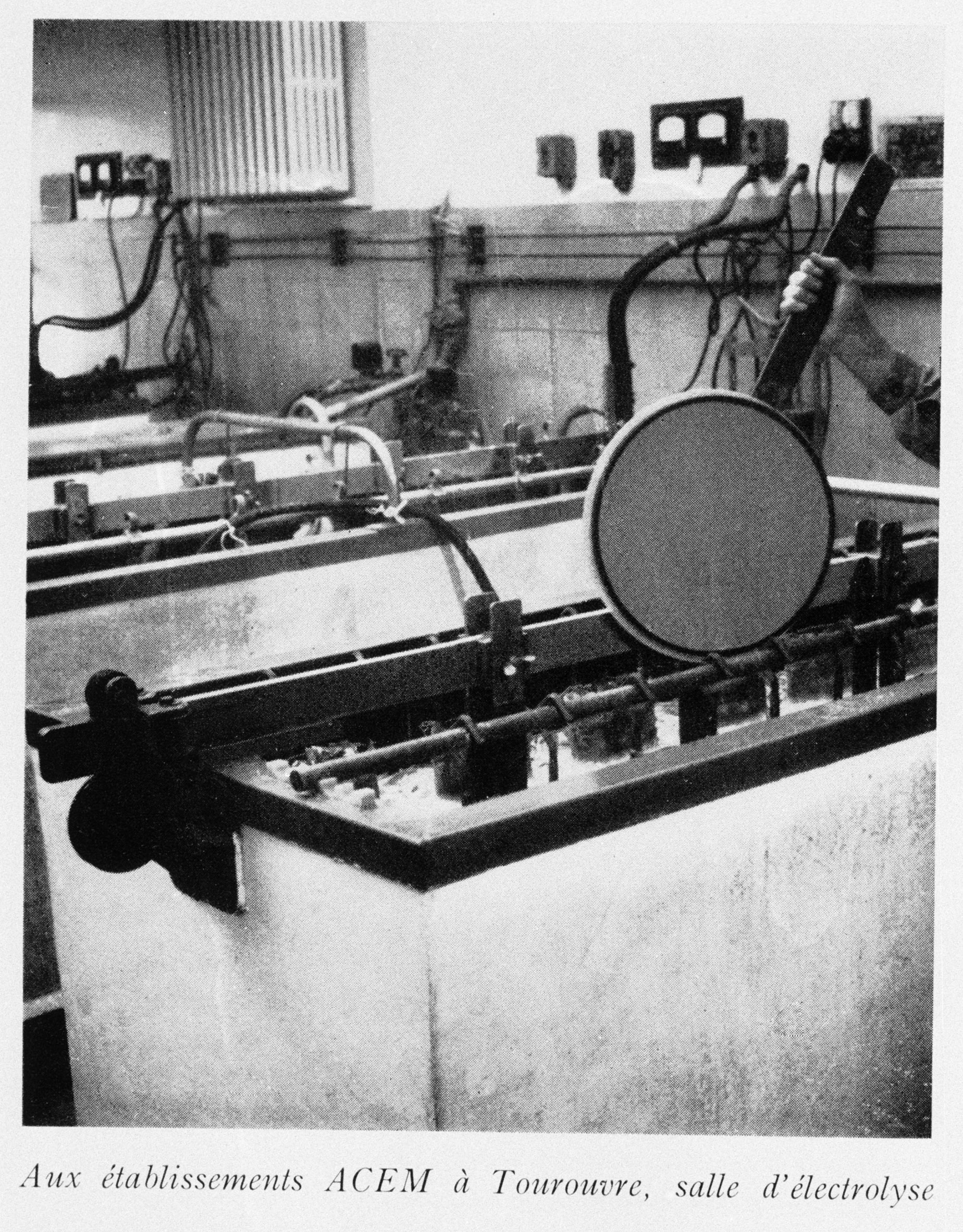 Salle d'électrolyse.- Photographie ancienne, tirée de : La Revue Géographique et Industrielle de France, 1966, n°39, p. 112.Immatriculation
