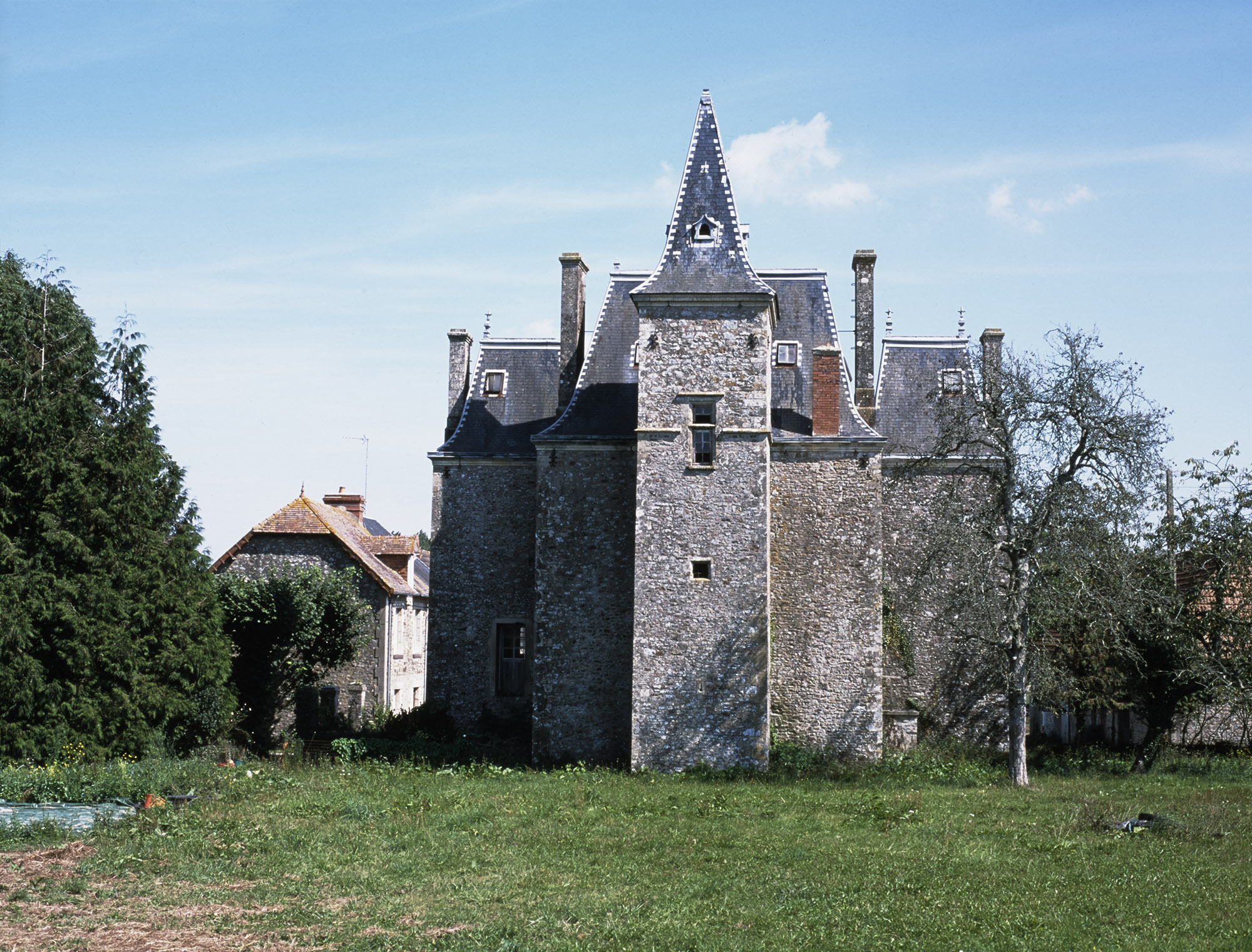Logis manorial, façade postérieure, vue prise de l'ouest.Immatriculation
