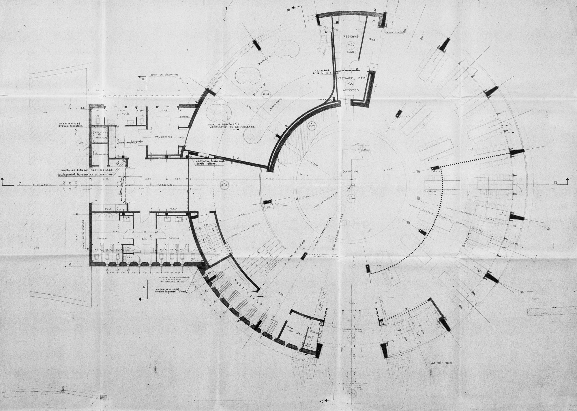 Plan du rez-de-chaussée, détail.- Plan, n.s., [attribué à Dureuil, Allaire et Muller, architectes], n.d., Caen, septembre 1955 [ ?]. Reprod. photoméca., [sans échelle], 99 x 71,5 cm. (AC Ouistreham).Immatriculation