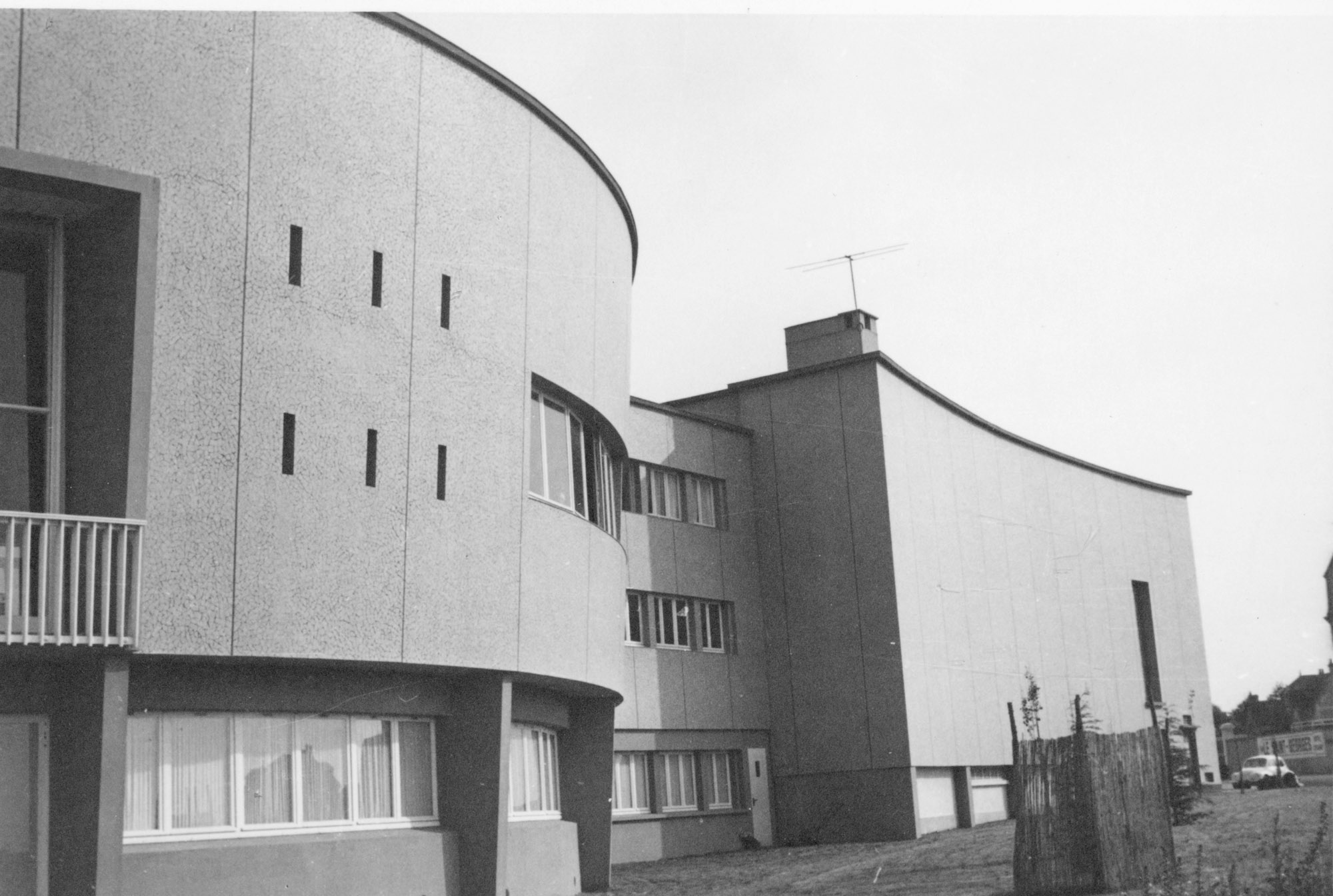 Vue de la rotonde et du théâtre prise du nord-est.- Photographie ancienne, n.s., n.d., vers 1957. Tirage original sur papier brillant, n. et b., 9 x 13 cm. (AC Ouistreham).Immatriculation