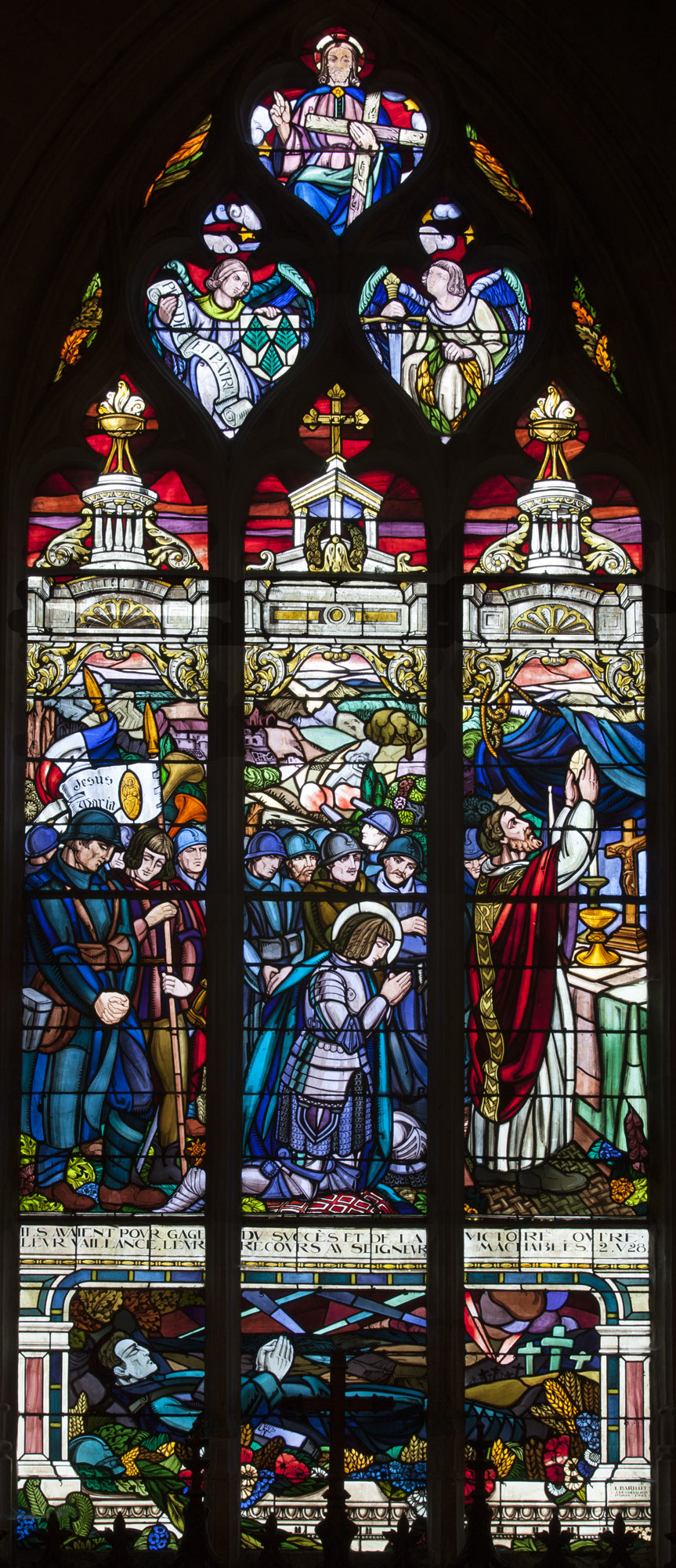 verrière hagiographique de la guerre de 1914-1918 : Messe sur le front en présence de sainte Jeanne d'Arc,