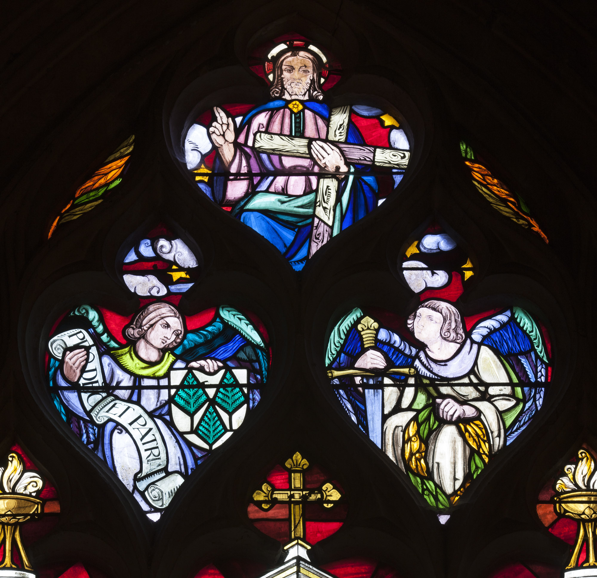verrière hagiographique de la guerre de 1914-1918 : Messe sur le front en présence de sainte Jeanne d'Arc,