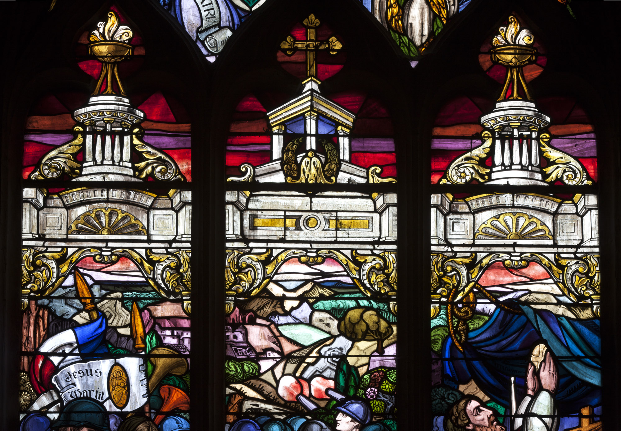 verrière hagiographique de la guerre de 1914-1918 : Messe sur le front en présence de sainte Jeanne d'Arc,