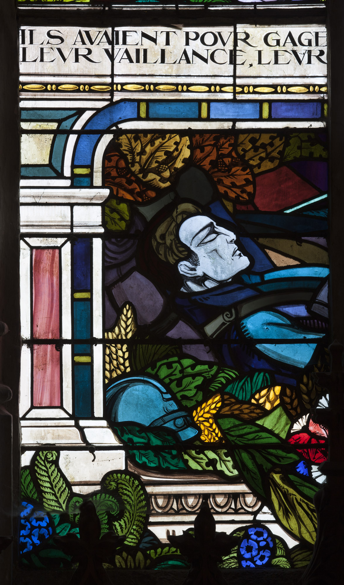 verrière hagiographique de la guerre de 1914-1918 : Messe sur le front en présence de sainte Jeanne d'Arc,
